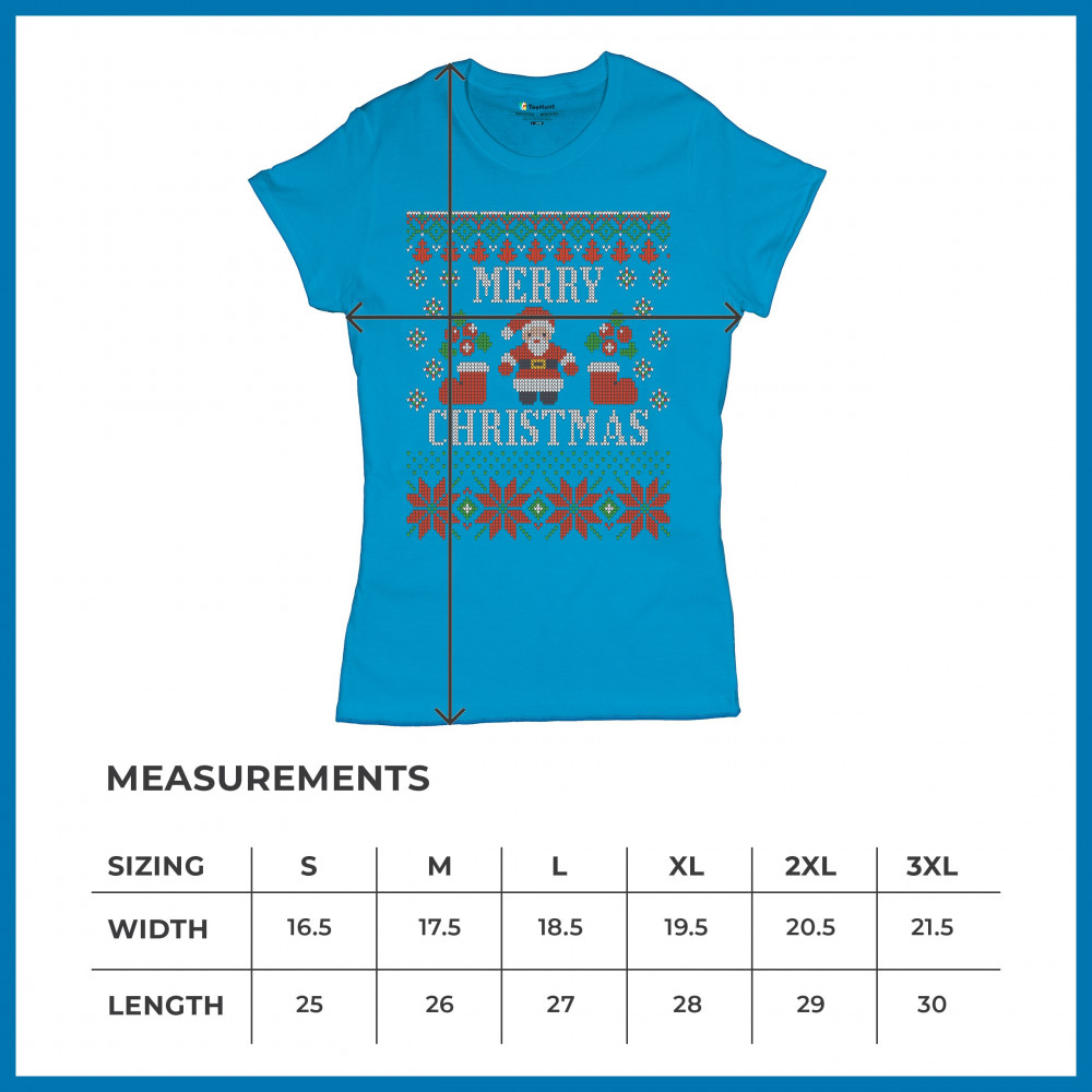 UGLY SWEATER SANTA CLAUS t-shirt let it snow christmas jingle bells women's tee light blue
