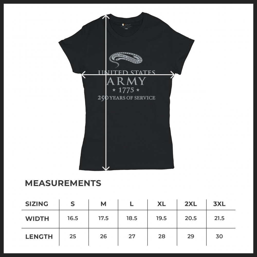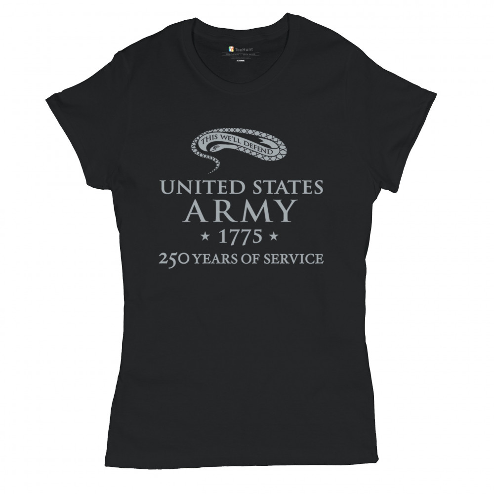 US ARMY 250 YEARS OF SERVICE t-shirt 1775 military veteran dd214 women's tee black