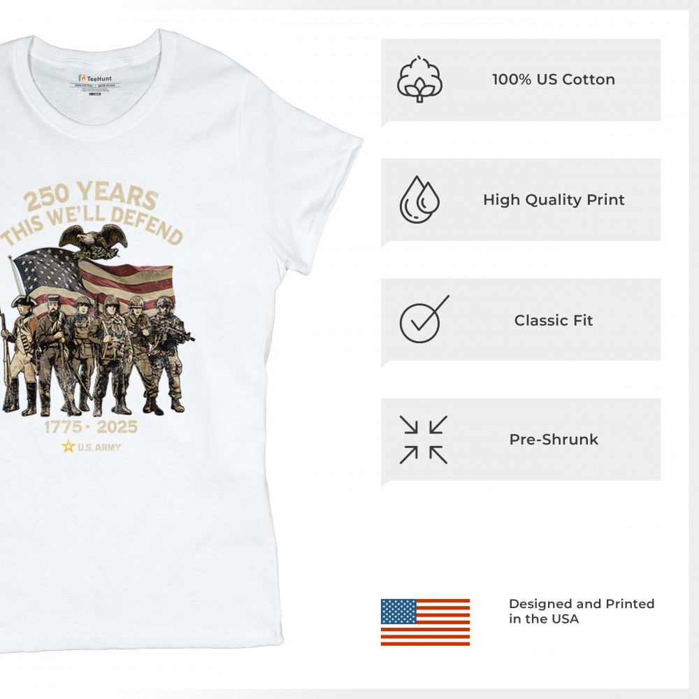 Celebrate 250 years of American strength and honor with this US Army design. Featuring soldiers from 1775 to 2025, the USA flag, and the American Eagle, it’s perfect for military veterans, patriots, and freedom-loving citizens. Ideal for Army apparel, Veterans Day pride, and gifts honoring the Armed Forces and America’s legacy of service.