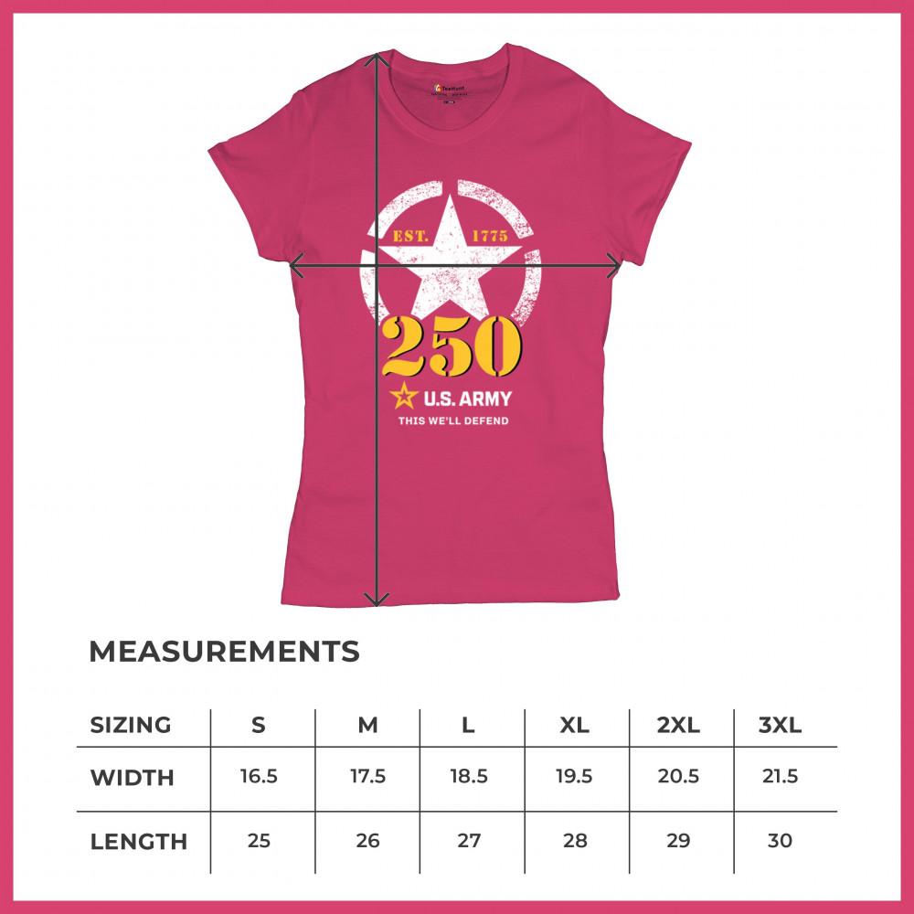 Celebrate 250 years of U.S. Army duty and pride with bold stencil design, EST 1775 mark, and patriotic “This We’ll Defend†motto.