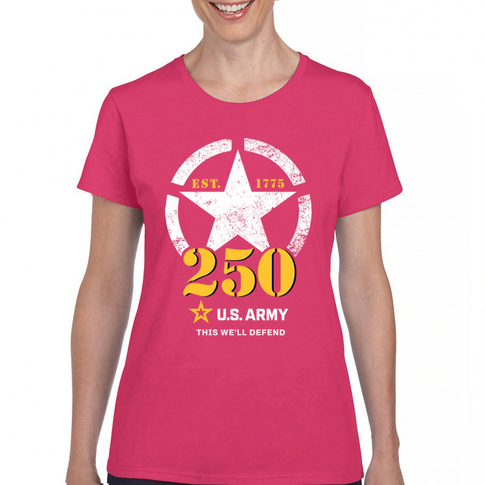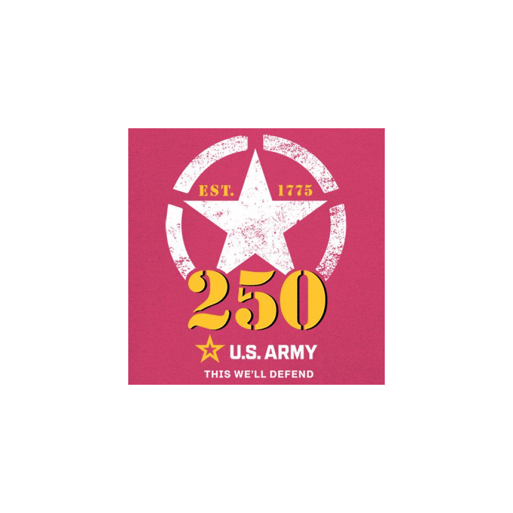 Boldly marking the U.S. Army’s 250th anniversary, this design includes a distressed white star, 1775 EST detail, and bold yellow “250†typeface beneath the iconic motto “This We’ll Defend.†A fitting tribute for veterans, service members, and families who want to show respect and pride during military observances or patriotic events.