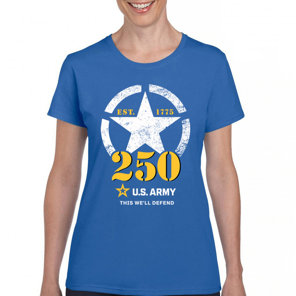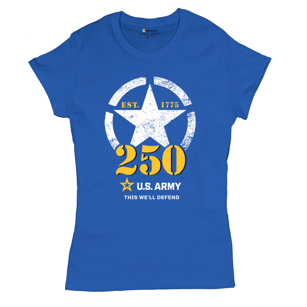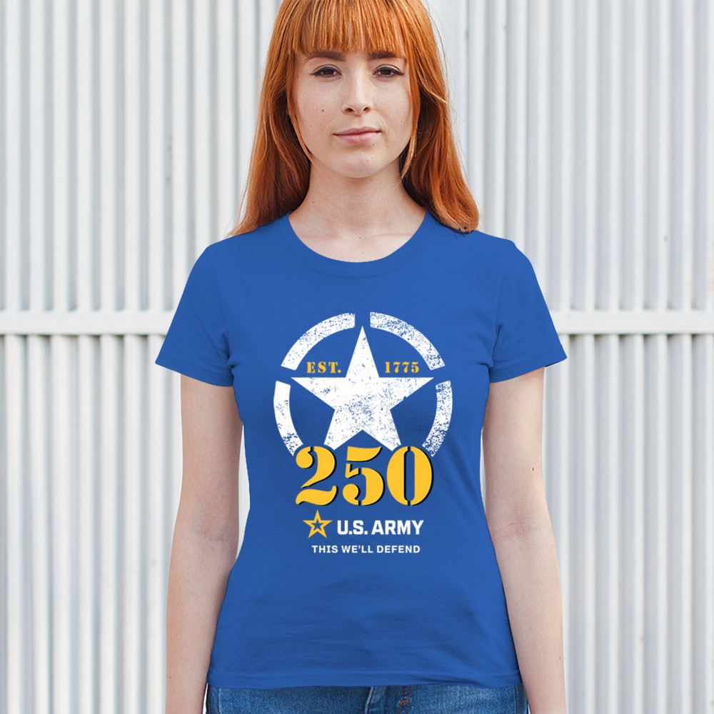 Boldly marking the U.S. Army’s 250th anniversary, this design includes a distressed white star, 1775 EST detail, and bold yellow “250†typeface beneath the iconic motto “This We’ll Defend.†A fitting tribute for veterans, service members, and families who want to show respect and pride during military observances or patriotic events.