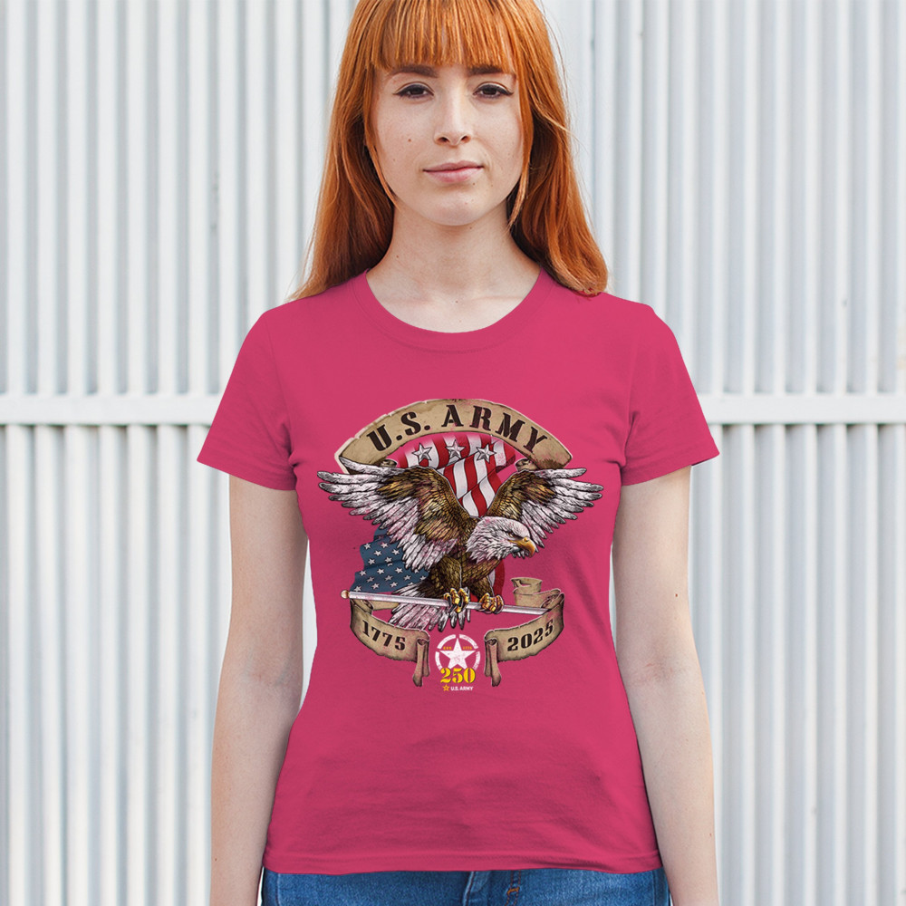 Celebrate the U.S. Army’s 250th Anniversary with patriotic eagle art, Army apparel, Veterans Day pride, and American freedom tribute.