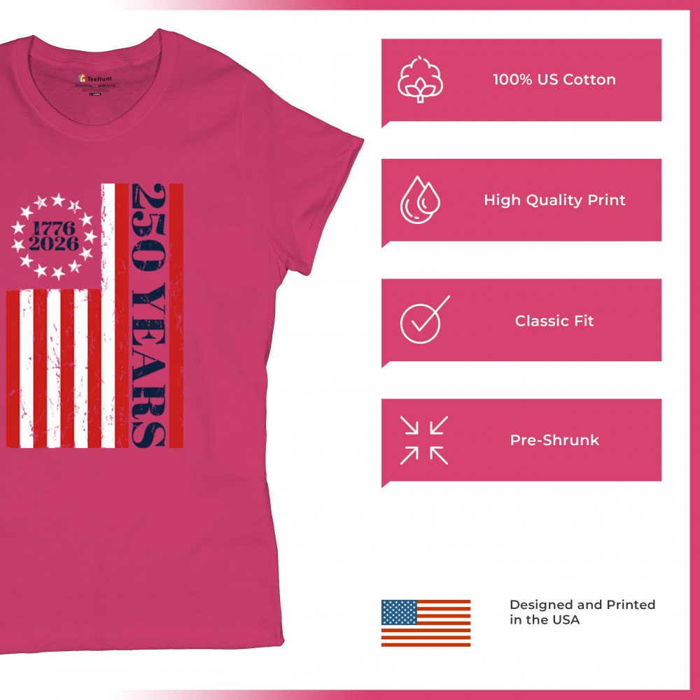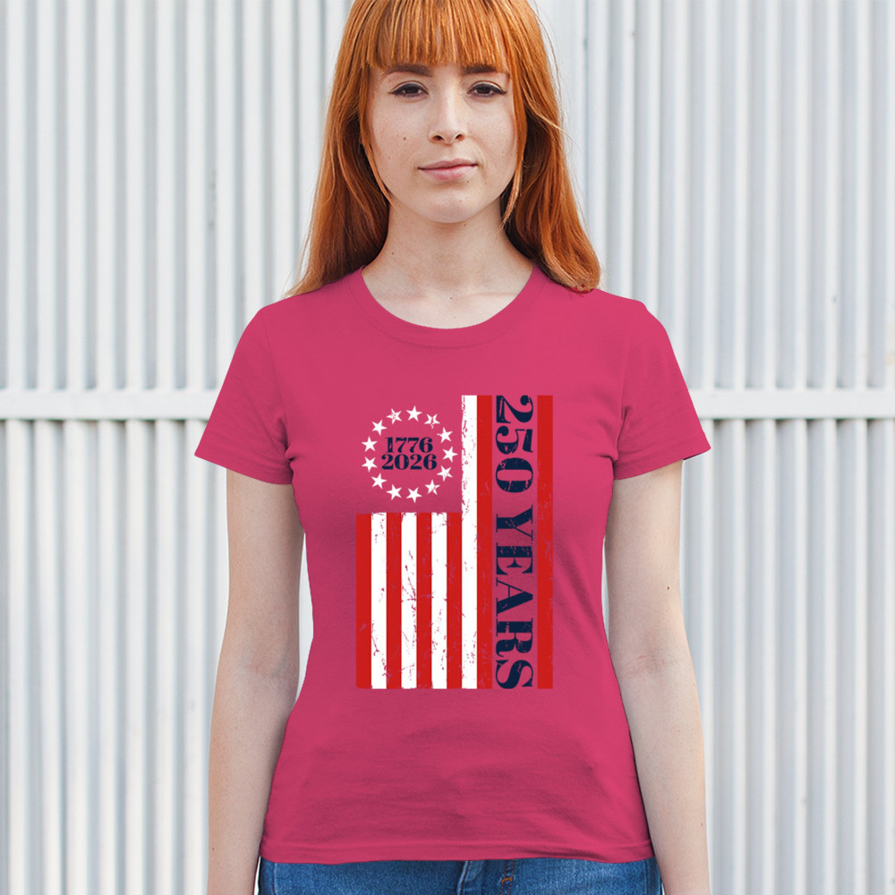 Celebrate USA 250 with patriotic flag shirt, America heritage 250, 1776–2026 milestone, American pride, and Independence Day freedom.
