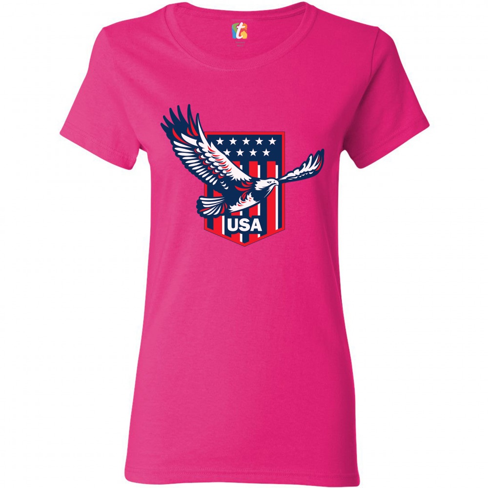 USA BALD EAGLE t-shrit stars and stripes shield 4th of july women's tee hot pink