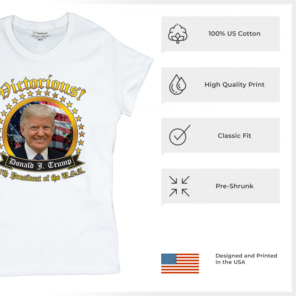 The "Victorious" design captures the spirit of Donald J. Trump’s victory as the 47th President, embodying the pride and patriotism of true American supporters. With elements of the American flag and an inspiring message, it’s a perfect symbol for Republicans, conservatives, and America First advocates. Celebrate the Red Wave and stand for a strong, united nation. Perfect for showing support at rallies, gatherings, or casual wear.