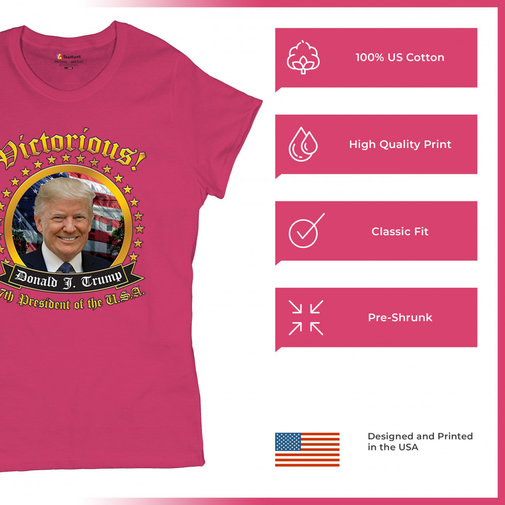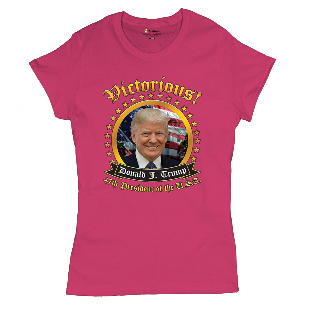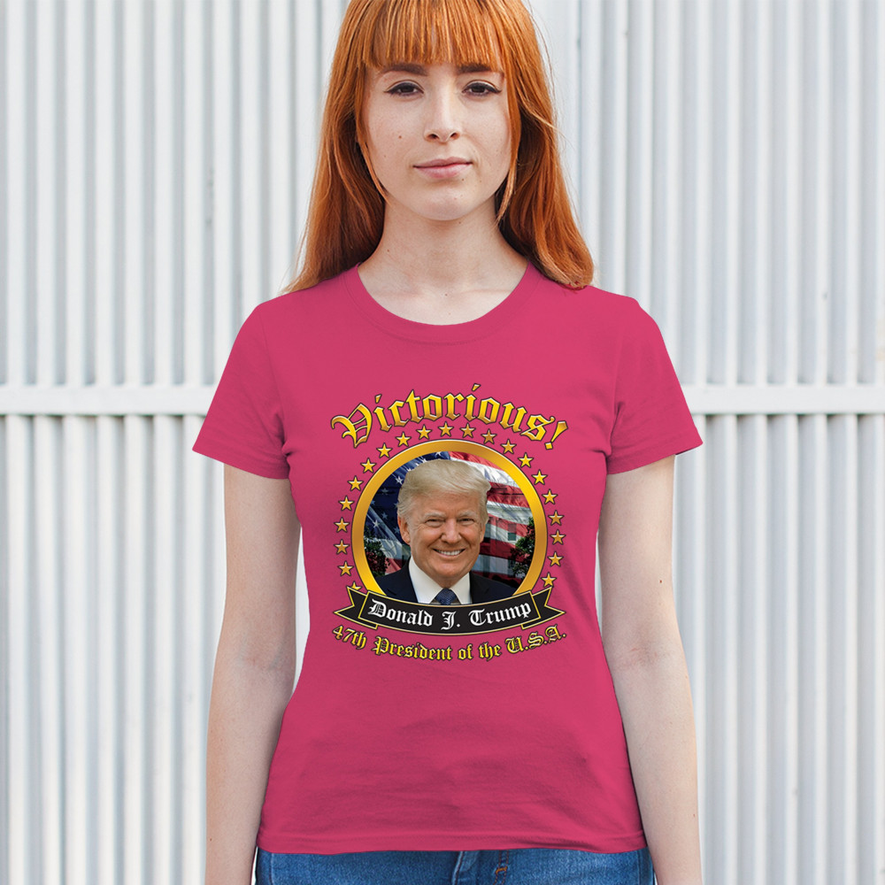 The "Victorious" design captures the spirit of Donald J. Trump’s victory as the 47th President, embodying the pride and patriotism of true American supporters. With elements of the American flag and an inspiring message, it’s a perfect symbol for Republicans, conservatives, and America First advocates. Celebrate the Red Wave and stand for a strong, united nation. Perfect for showing support at rallies, gatherings, or casual wear.