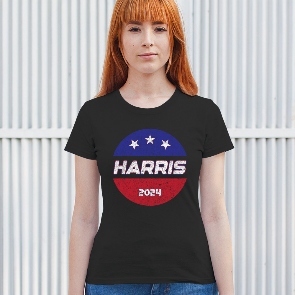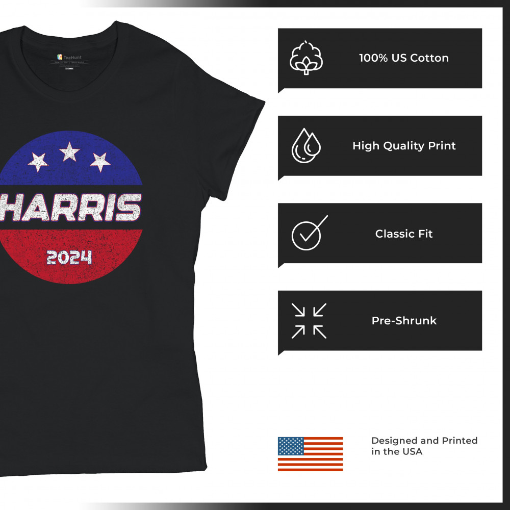 Embrace your political stance with this Kamala Harris 2024 design, crafted for supporters of the Democratic party and those who believe in a brighter, inclusive future. The design features the American flag and bold lettering, making it a perfect choice for rallies, political events, or casual wear. It underscores the historic significance of electing the first female president and represents a broad coalition of black Americans, Hispanic Americans, LGBTQ, and other minority groups. Stand out and show your unwavering support for Kamala Harris and her vision for America.