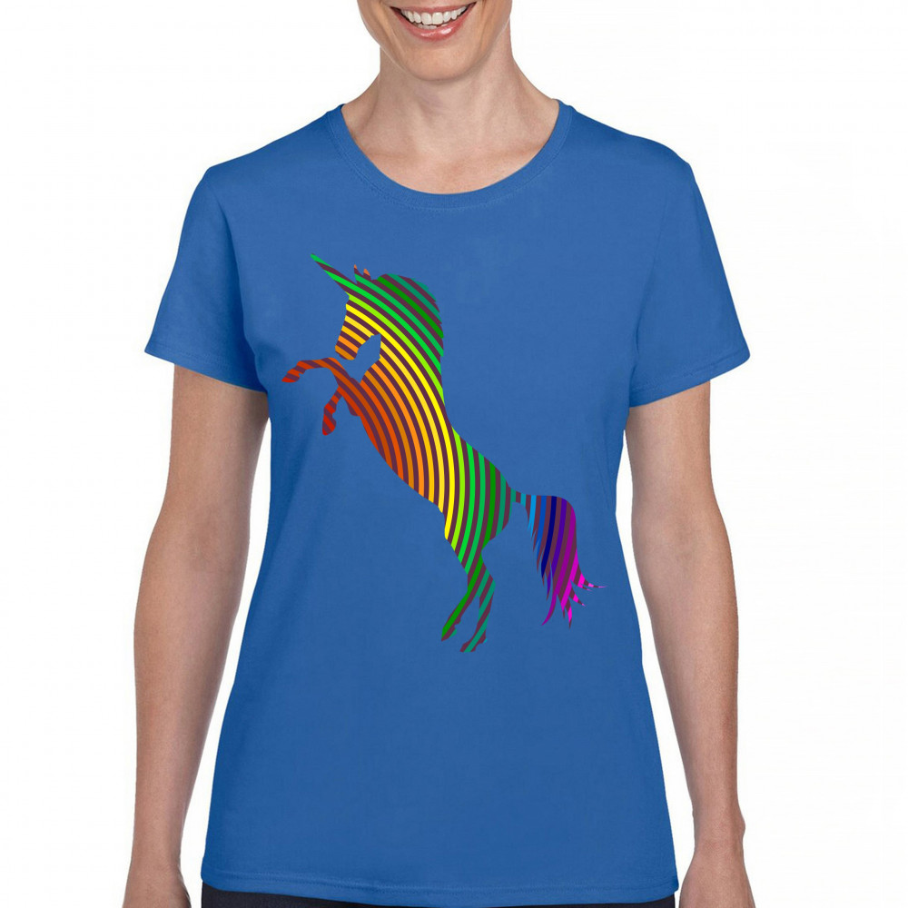 VIVID RAINBOW-STRIPE REARING t-shirt lgbtq+ queer gay pride women's tee royal blue