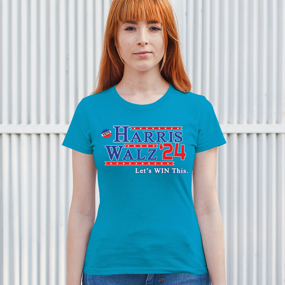 Express your support for Kamala Harris and Tim Walz in the 2024 election with this dynamic and patriotic design. Perfect for rally participants, dedicated supporters, and advocates of liberal values, this design captures the essence of the campaign. Highlighting America First, women's rights, and LGBTQ+ equality, it symbolizes the fight for victory and justice. Trust in government and join the rebelution against conservative agendas. Stand with Kamala and Walz for a brighter future. Let's win this together in 2024. Let's Win This.