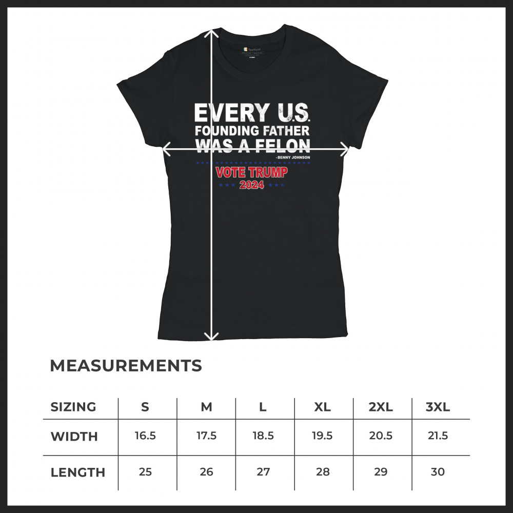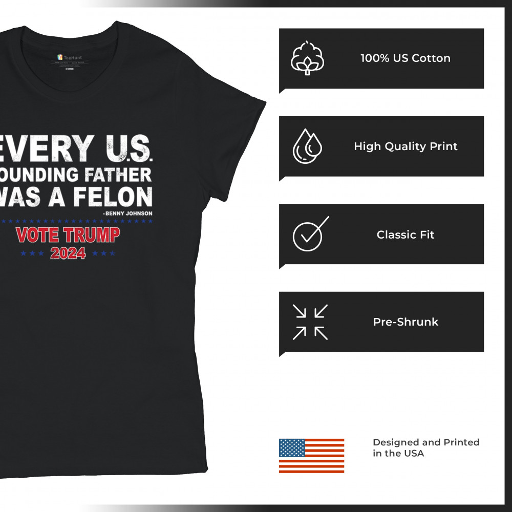 Show your support for Trump 2024 with a bold design quoting "Every U.S. founding father was a felon." Stand against political attacks and support an America-first vision.