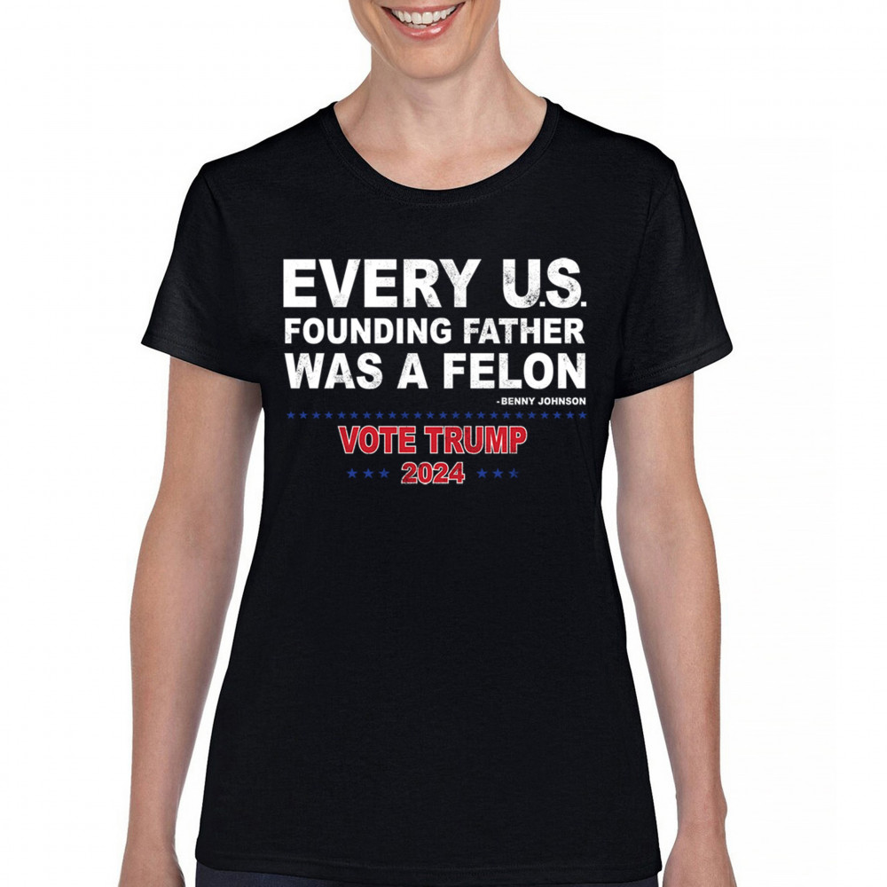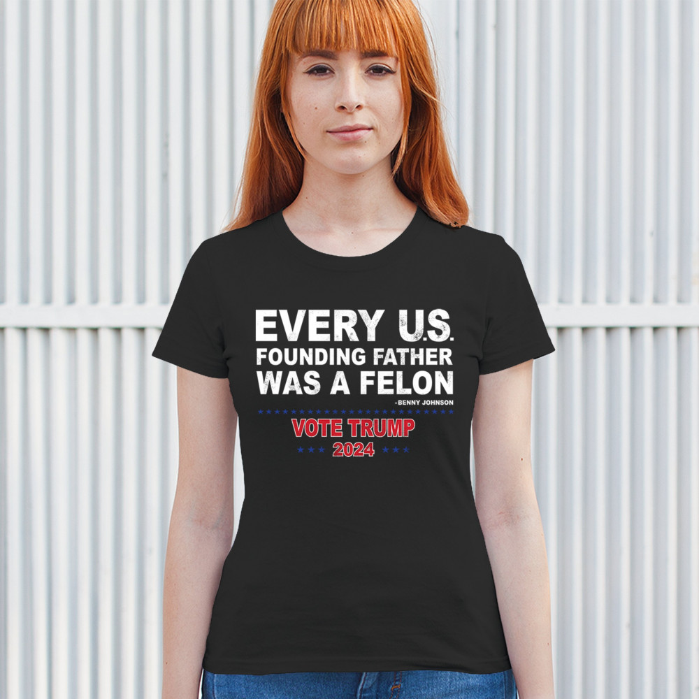 VOTE TRUMP 2024 t-shirt every us founding father was a felon maga women's tee black