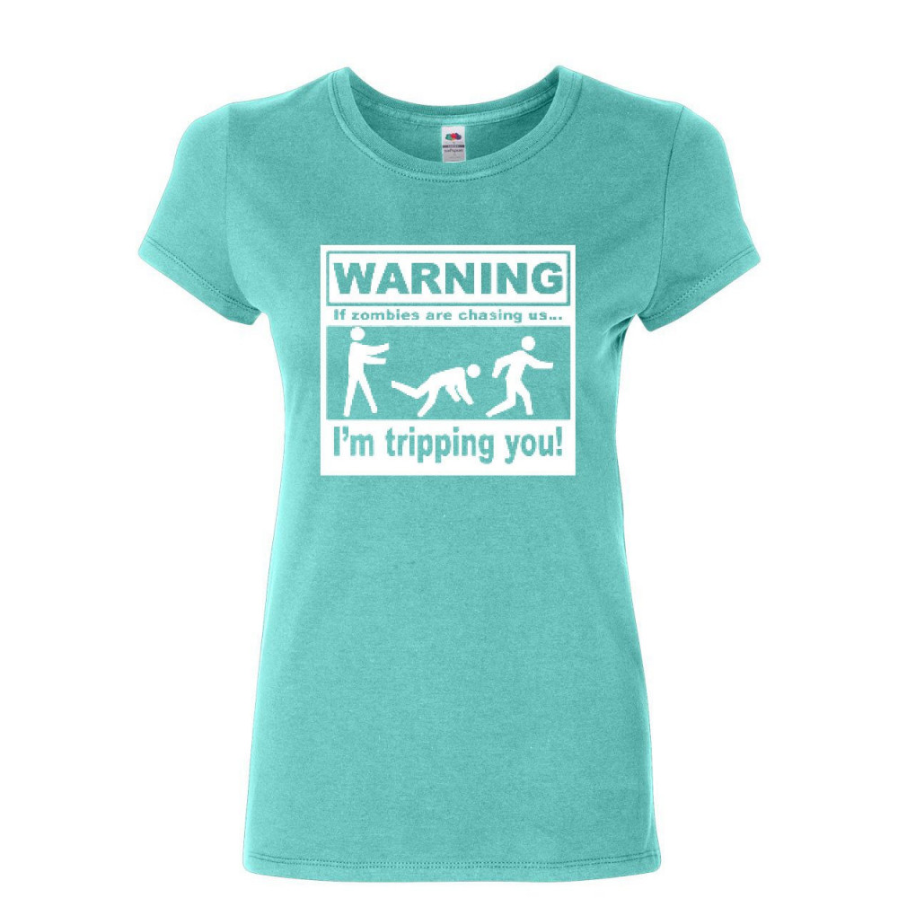 WARNING IF ZOMBIES ARE CHASING US I'M TRIPPING YOU cotton t-shirt 0 light blue