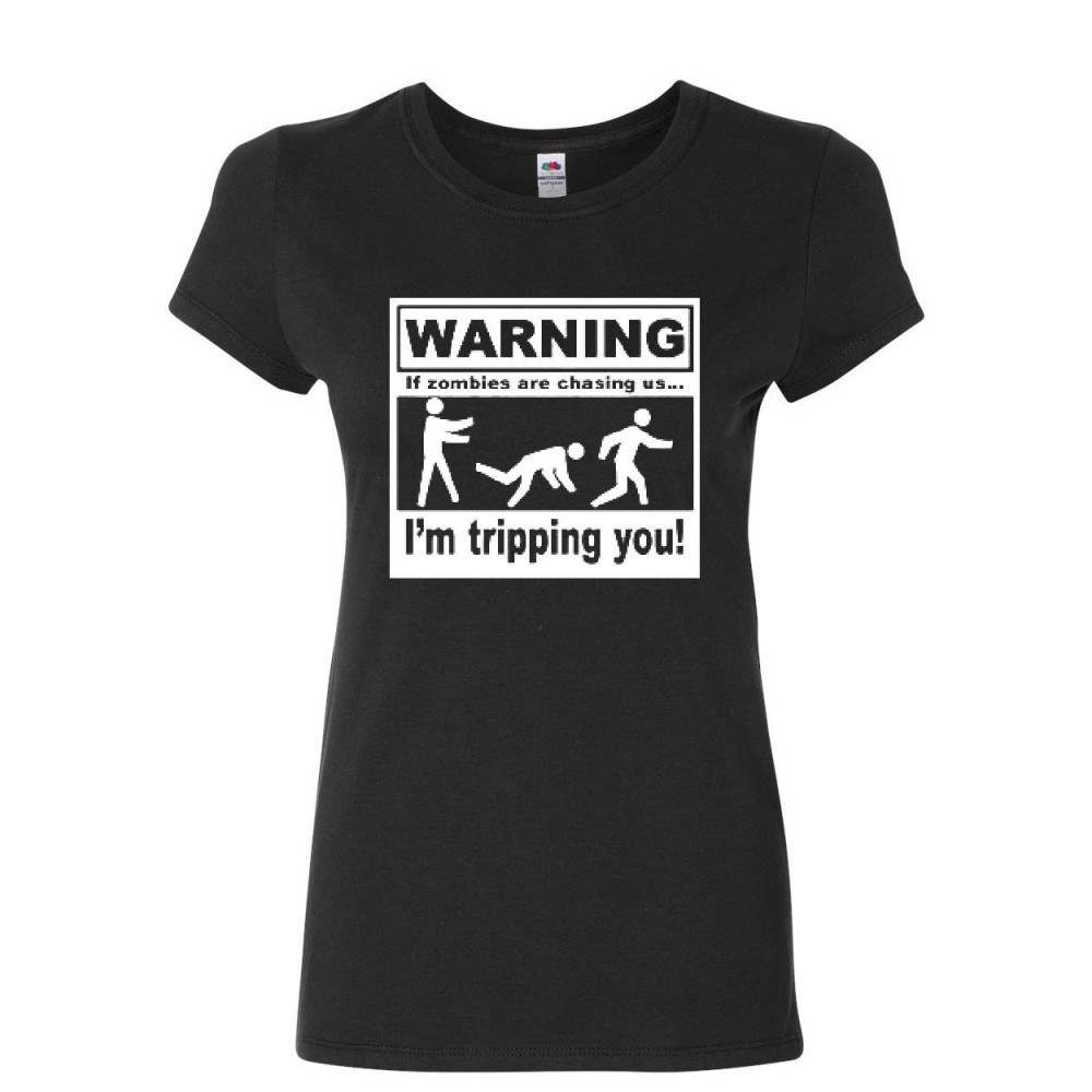 WARNING IF ZOMBIES ARE CHASING US I'M TRIPPING YOU cotton t-shirt 0 black