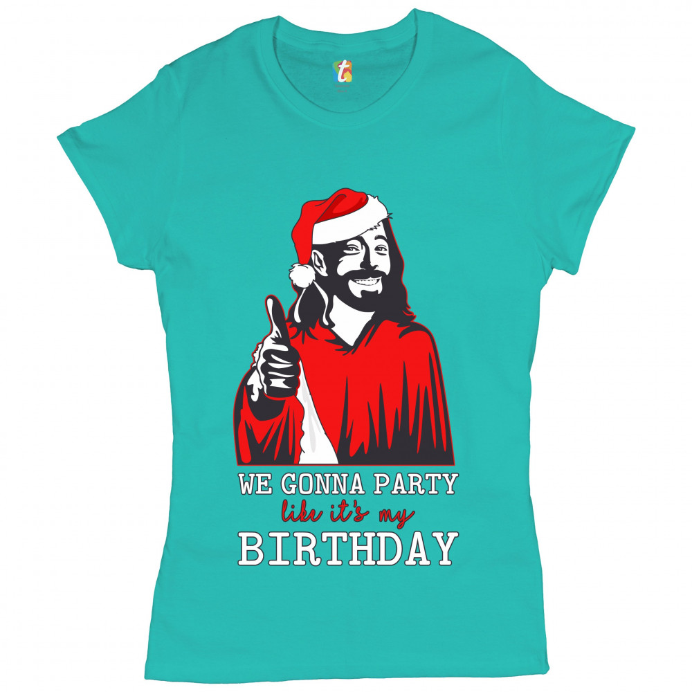 WE GONNA PARTY LIKE IT'S MY BIRTHDAY t-shirt jesus christ xmas women's tee light blue