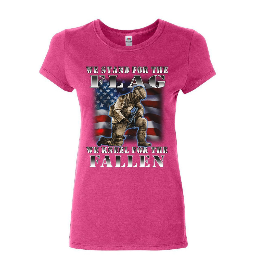 WE STAND FOR THE FLAG women's t-shirt veteran military pow mia army navy shirt pink