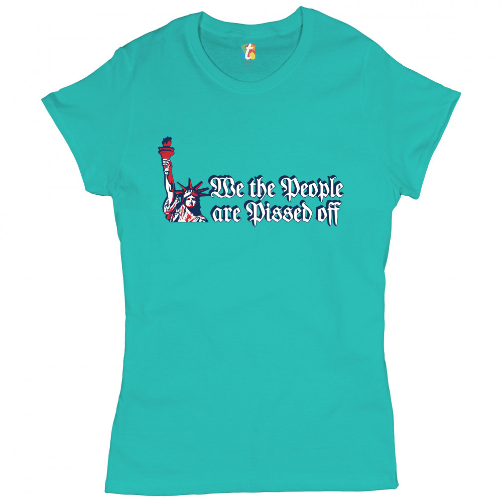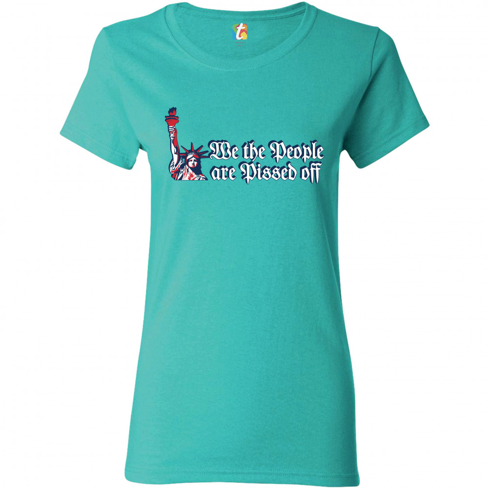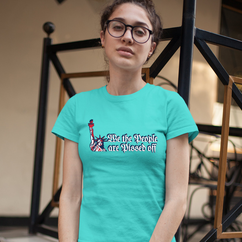 WE THE PEOPLE ARE PISSED OFF t-shirt statue of liberty patriotic women's tee light blue