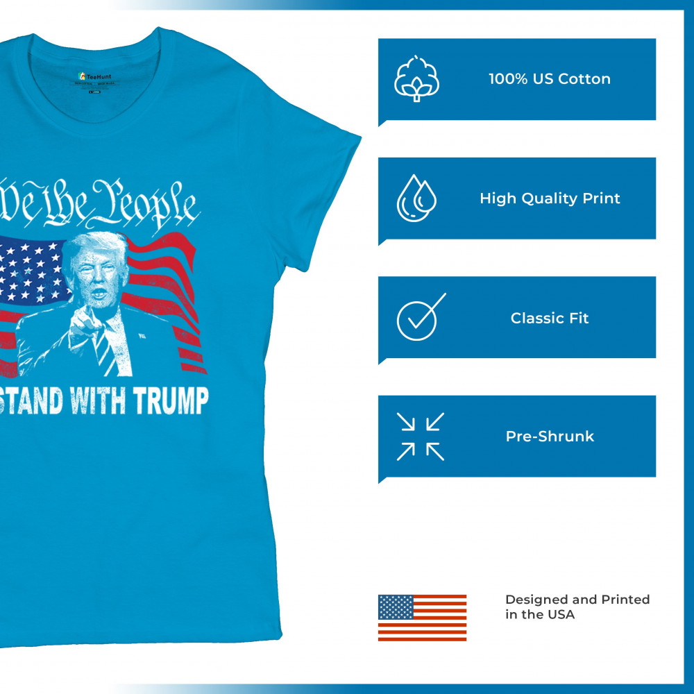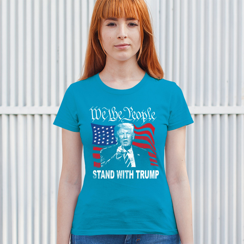 Show your support for Trump with the "We the People Stand with Trump" design. A powerful symbol of patriotism, featuring Trump and the American flag. Stand up for conservative values.