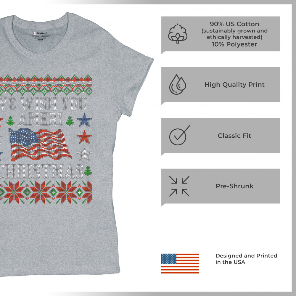 WE WISH YOU AMERI CHRISTMAS t-shirt ugly sweater american flag women's tee gray