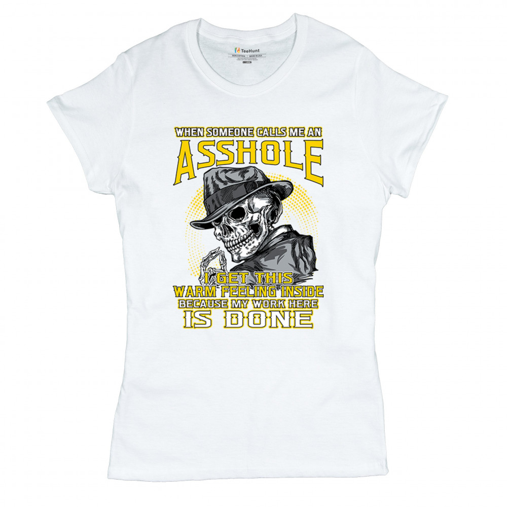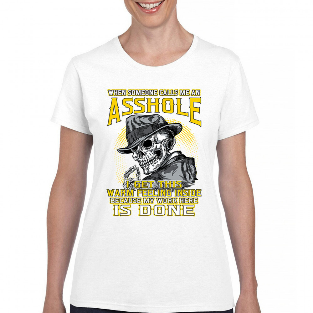 This badass design features a smirking skull in a fedora with a cigarette, backed by the line: “When someone calls me an asshole... my work here is done.†Built for dark humor fans, skull art lovers, and those who live life with sharp wit and zero regrets. Ideal for biker rallies, sarcasm nights, or anyone owning their attitude with pride.