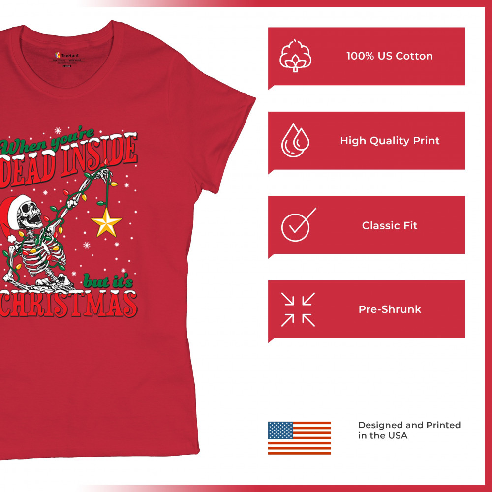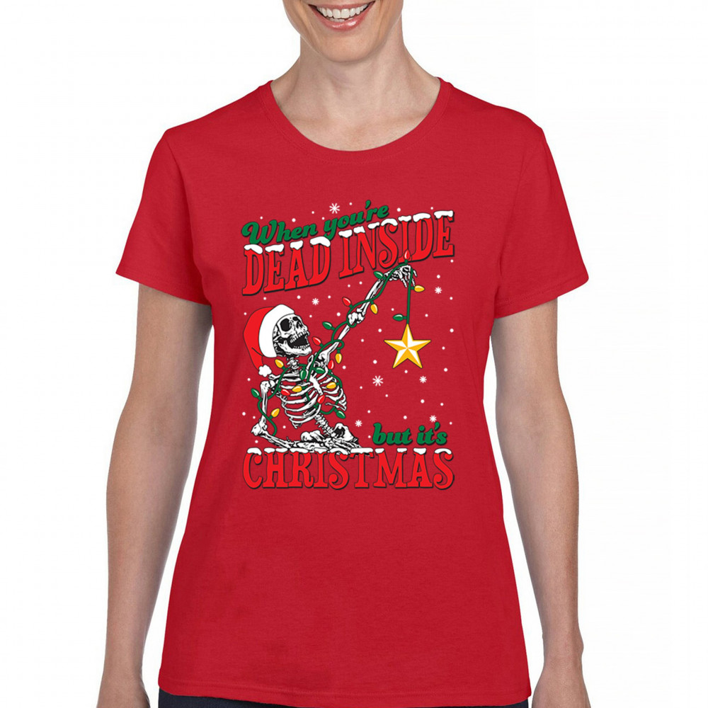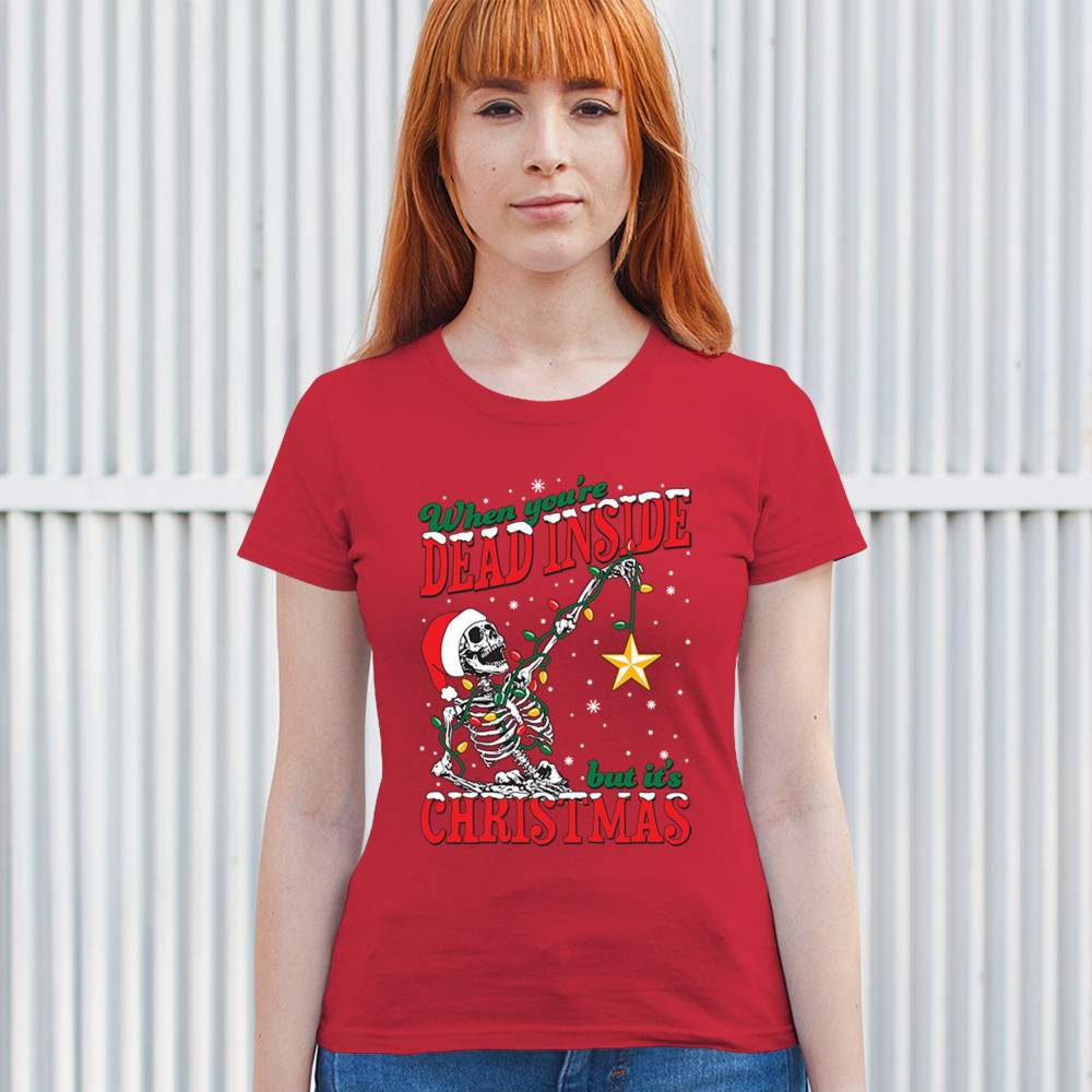 Celebrate humor and holiday spirit with the "When You're Dead Inside But It's Christmas" skeleton design. Perfect for parties and unique gifts.