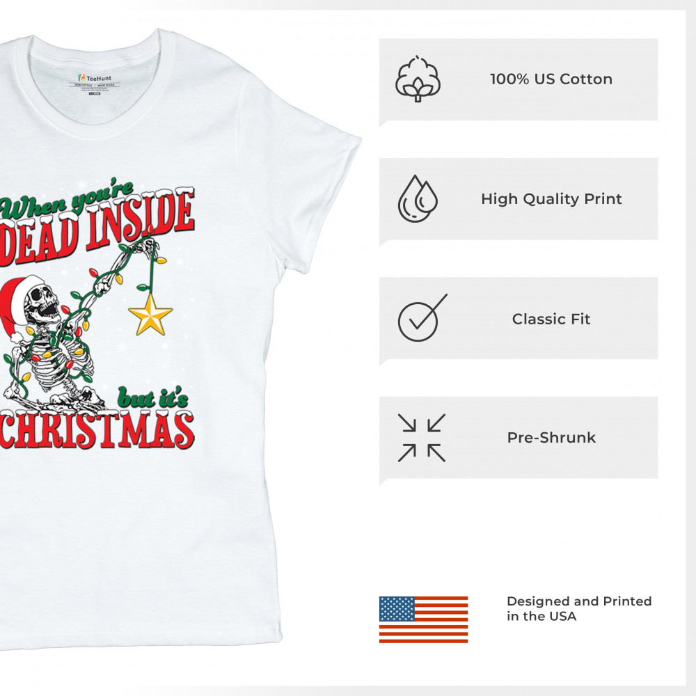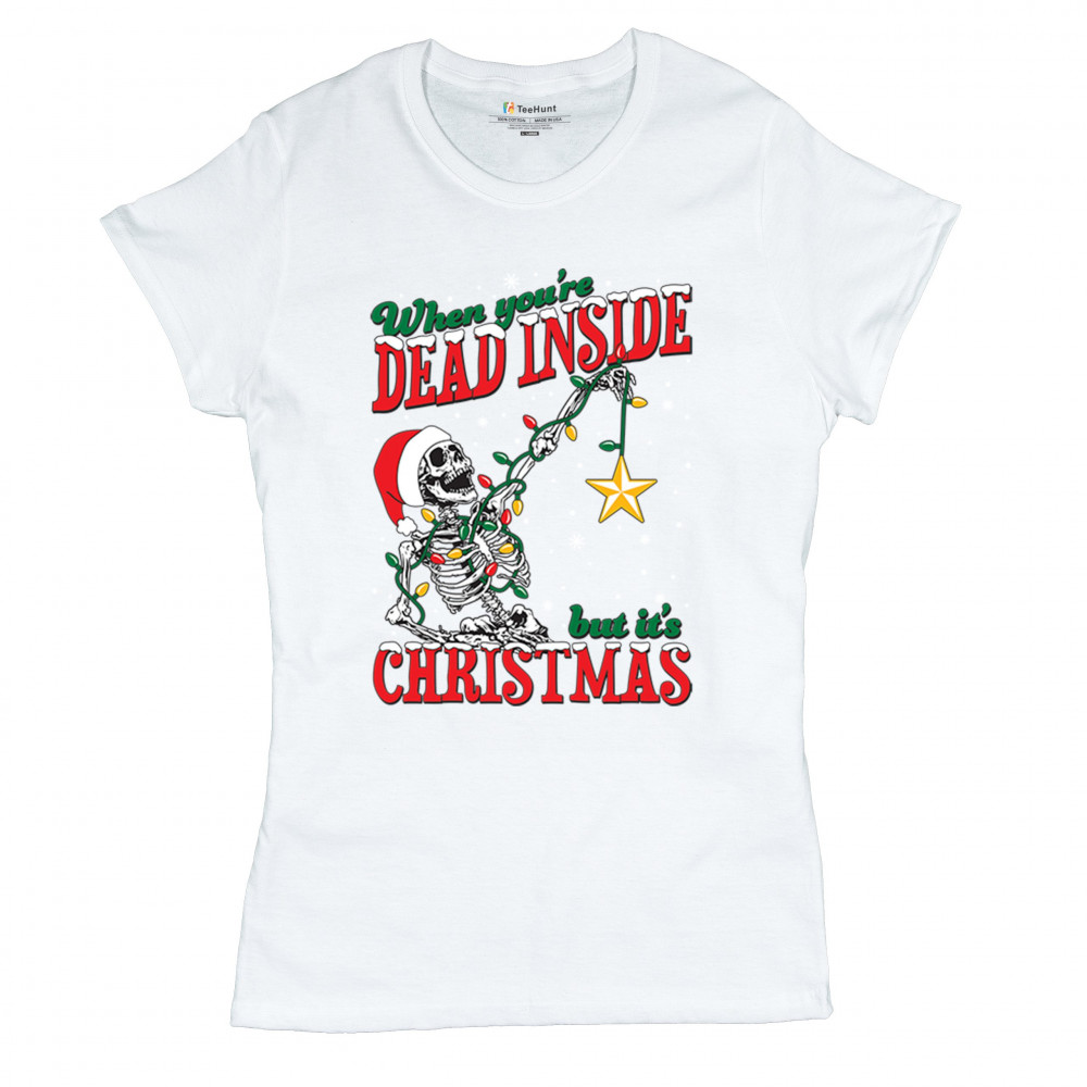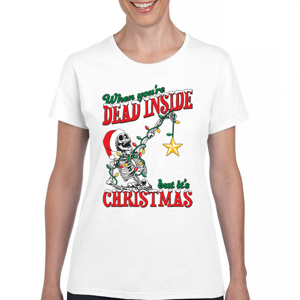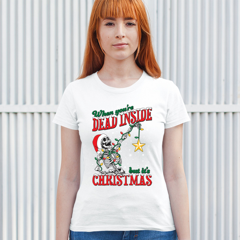 Celebrate humor and holiday spirit with the "When You're Dead Inside But It's Christmas" skeleton design. Perfect for parties and unique gifts.