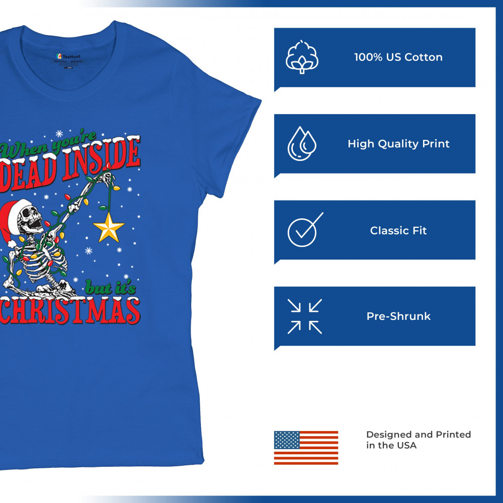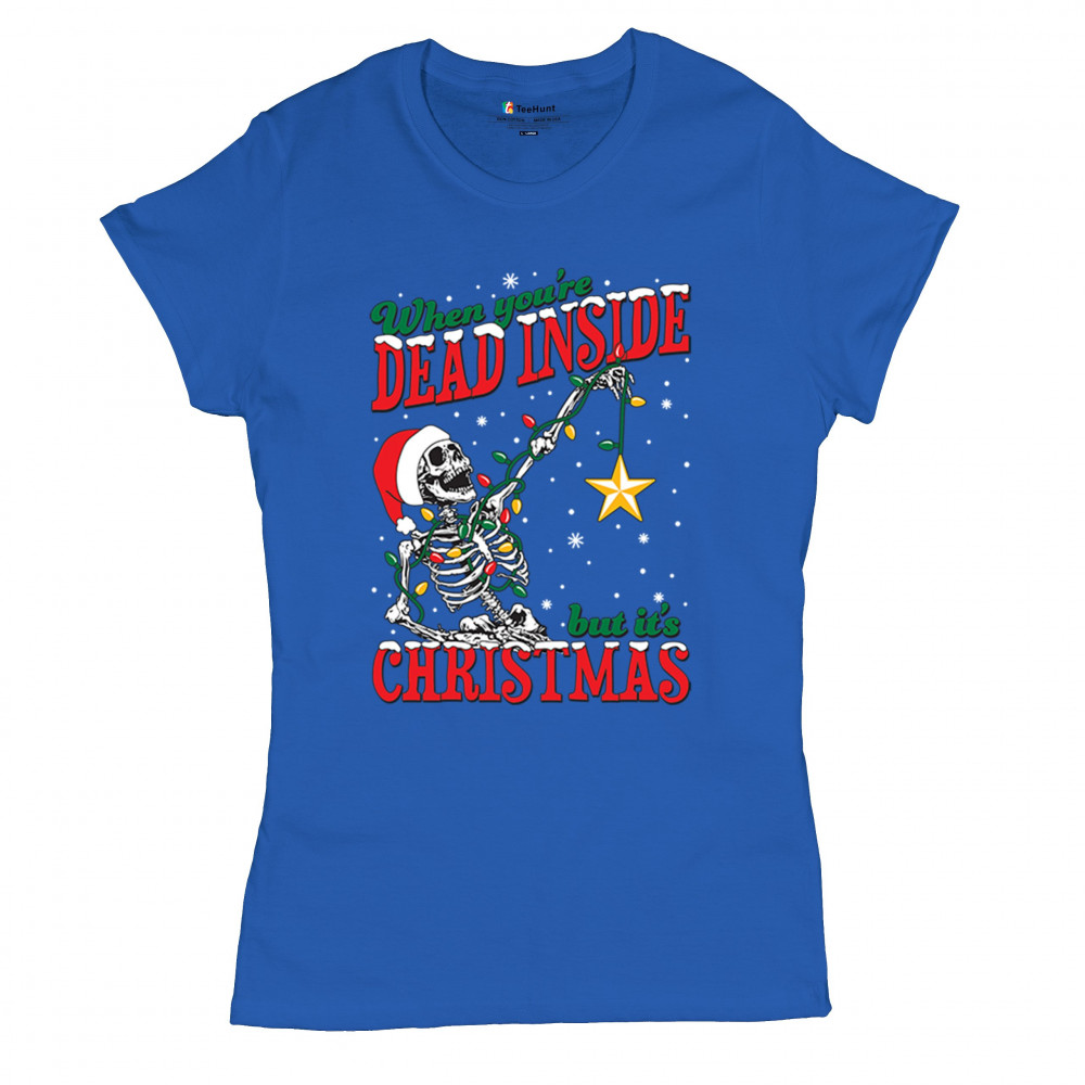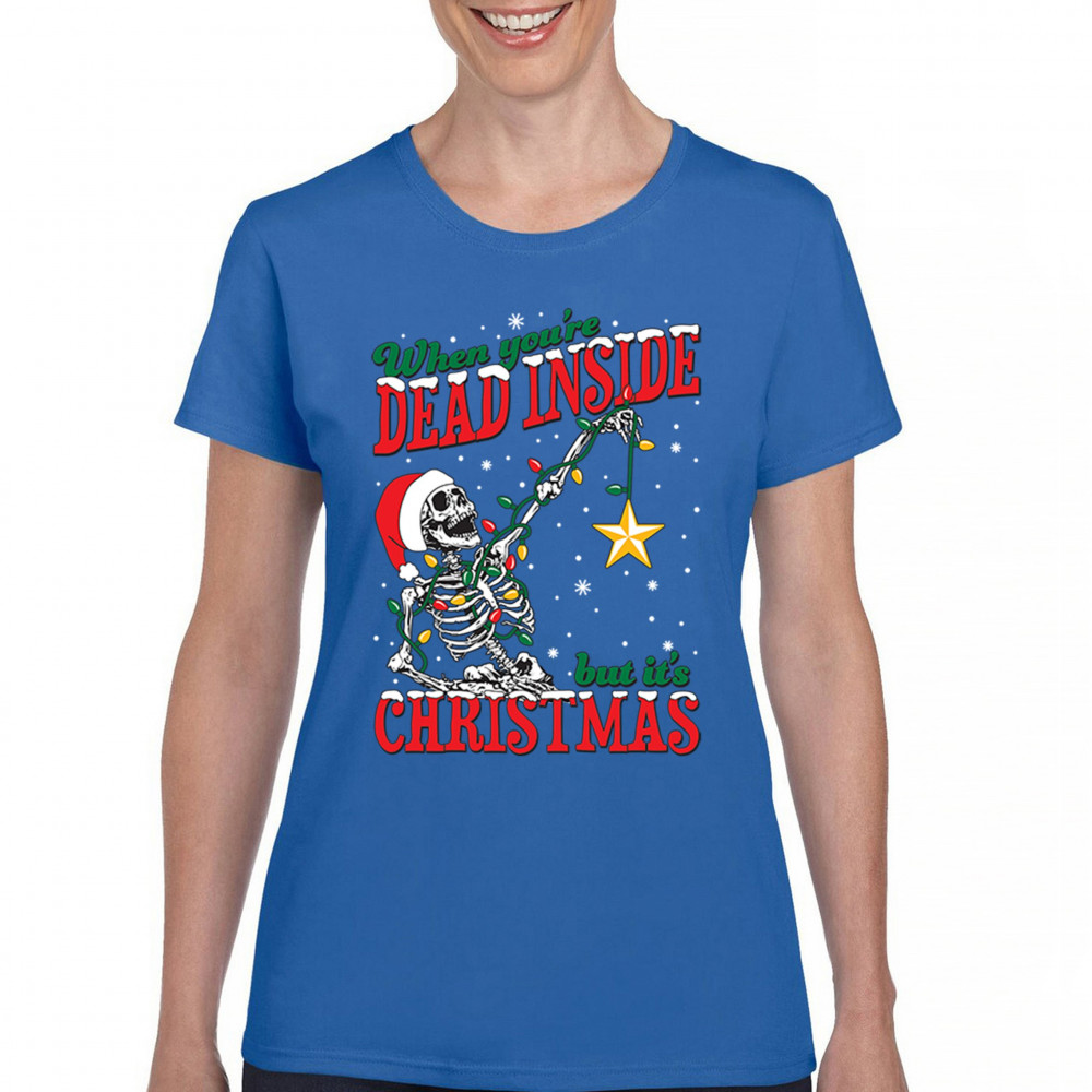 Celebrate humor and holiday spirit with the "When You're Dead Inside But It's Christmas" skeleton design. Perfect for parties and unique gifts.