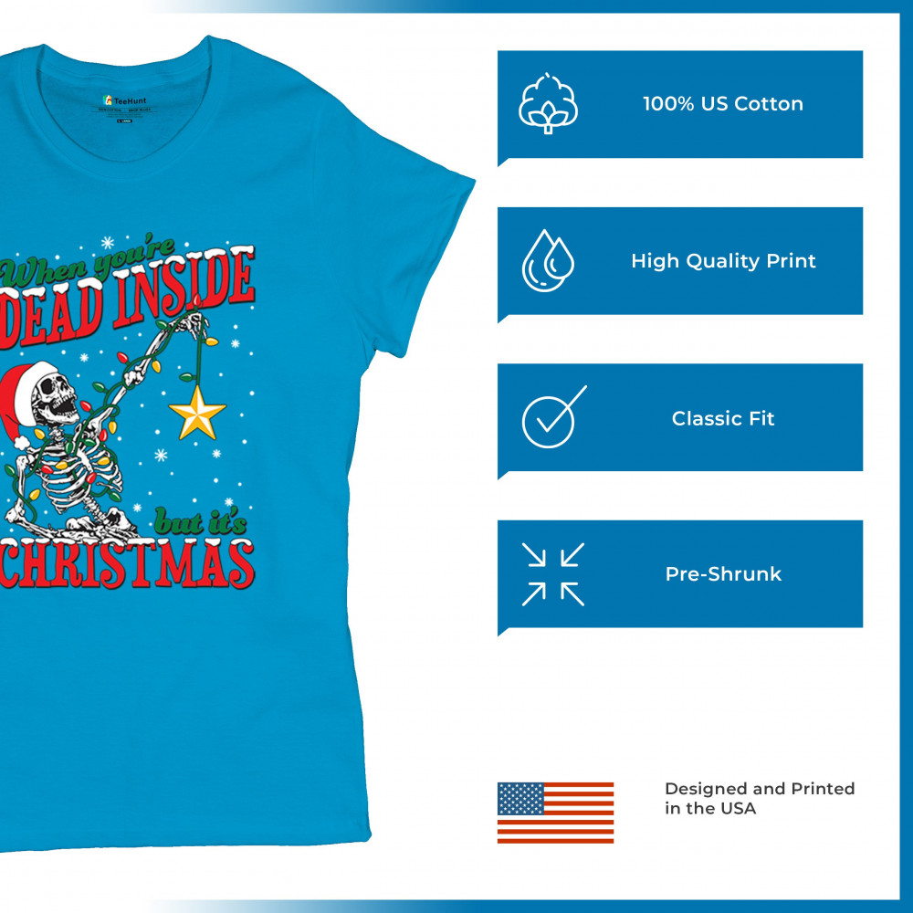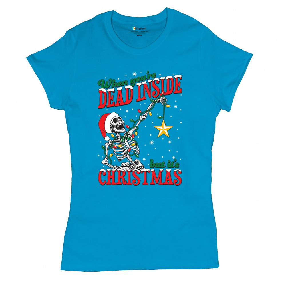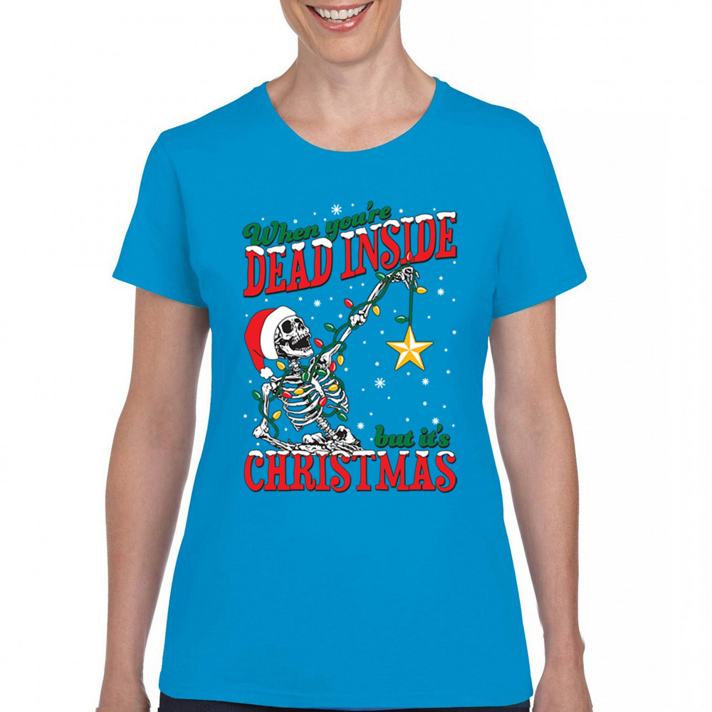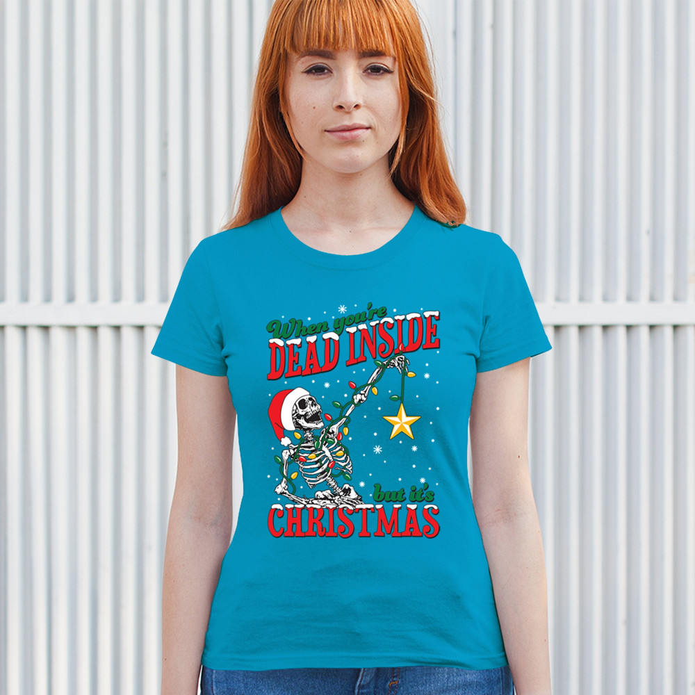 Celebrate humor and holiday spirit with the "When You're Dead Inside But It's Christmas" skeleton design. Perfect for parties and unique gifts.