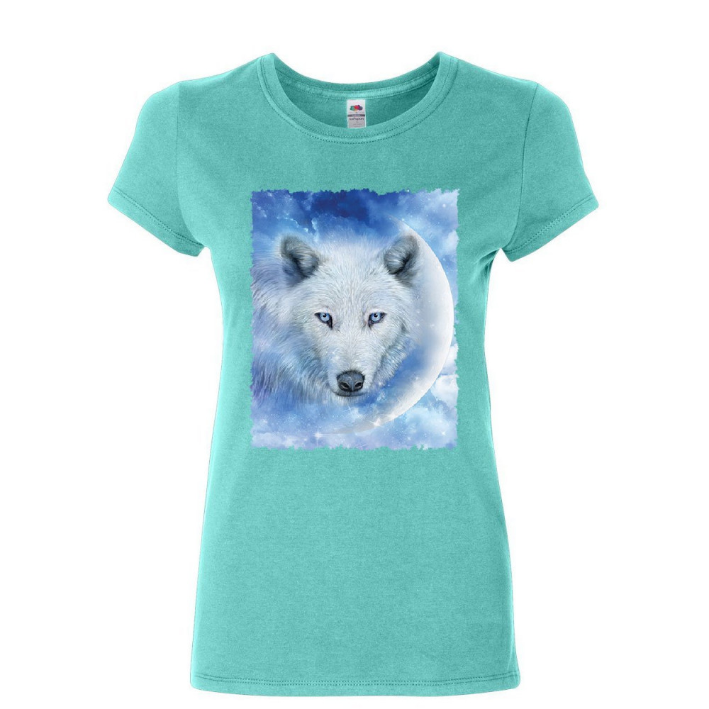 WHITE WOLF women's t-shirt wildlife animal moon howl nature wolfpack shirt light blue