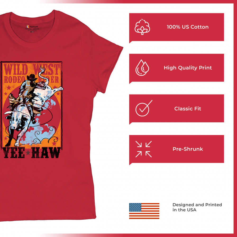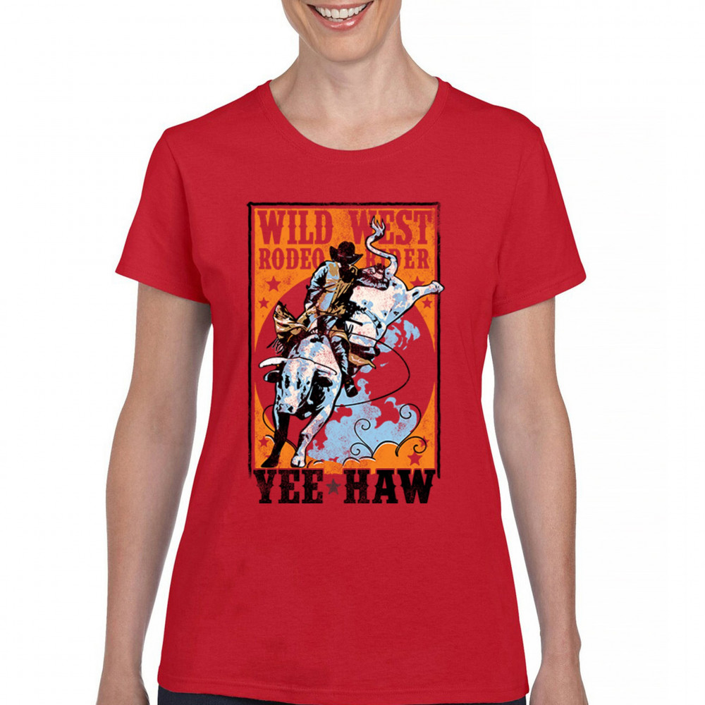 Bold cowboy bull riding design with orange backdrop, perfect for rodeo fans, western events, and country festivals.