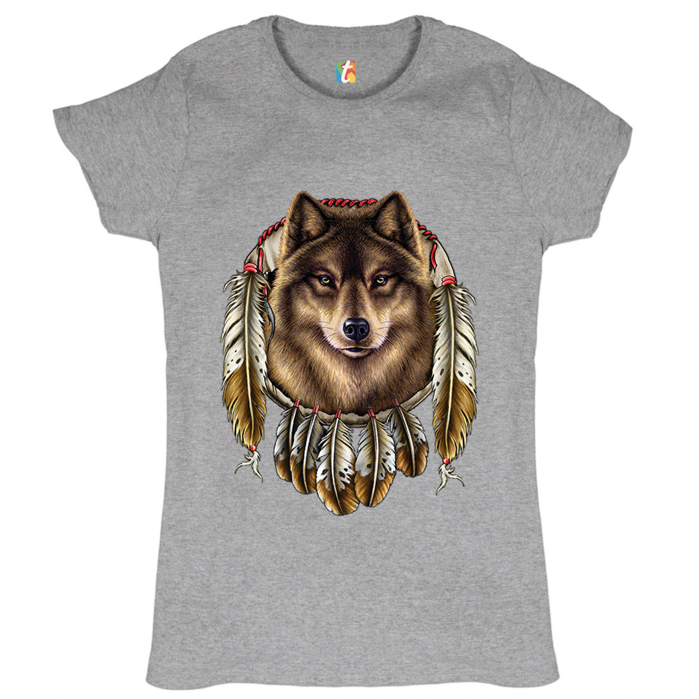 WOLF SPIRIT t-shirt native american dreamcatcher indigenous women's tee gray