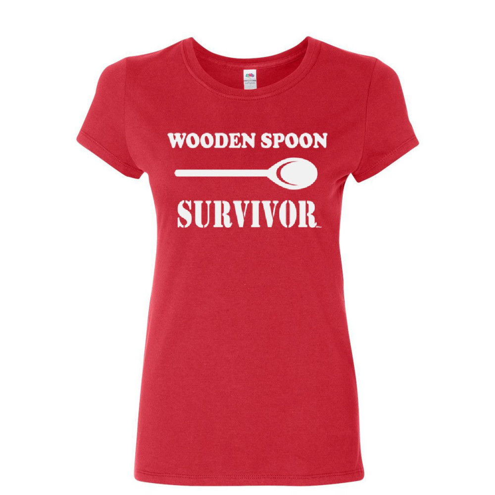 WOODEN SPOON SURVIVOR cotton t-shirt funny college humor red