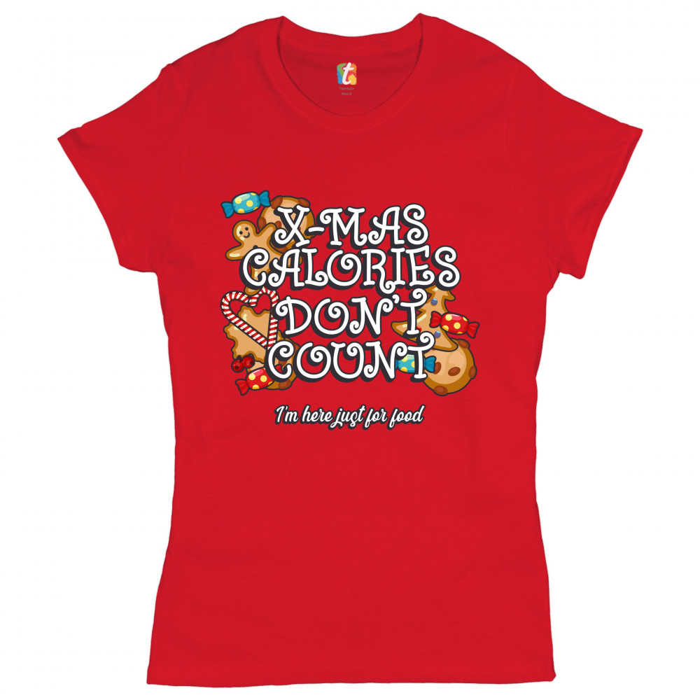 X-MAS CALORIES DON'T COUNT t-shirt merry christmas naughty or nice women's tee red