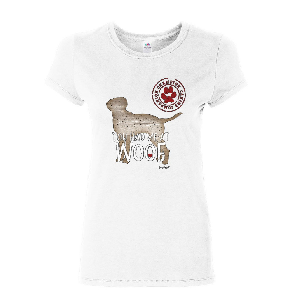 YOU HAD ME AT WOOF women's t-shirt pet friend dogs doggie puppy paw bark shirt white