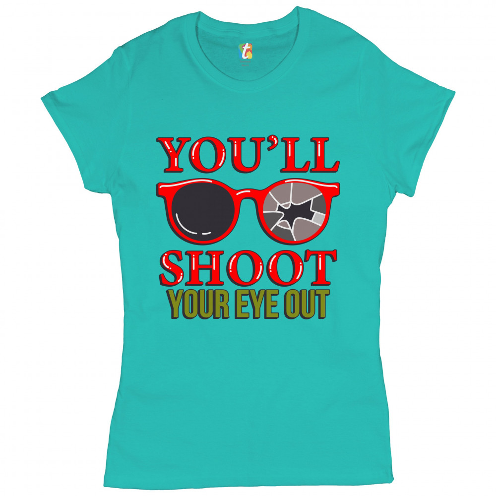 YOU'LL SHOOT YOUR EYE OUT t-shirt funny christmas saying xmas women's tee light blue