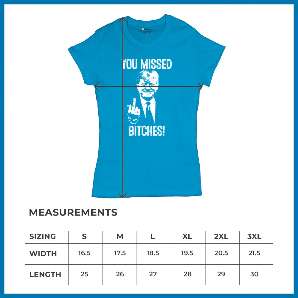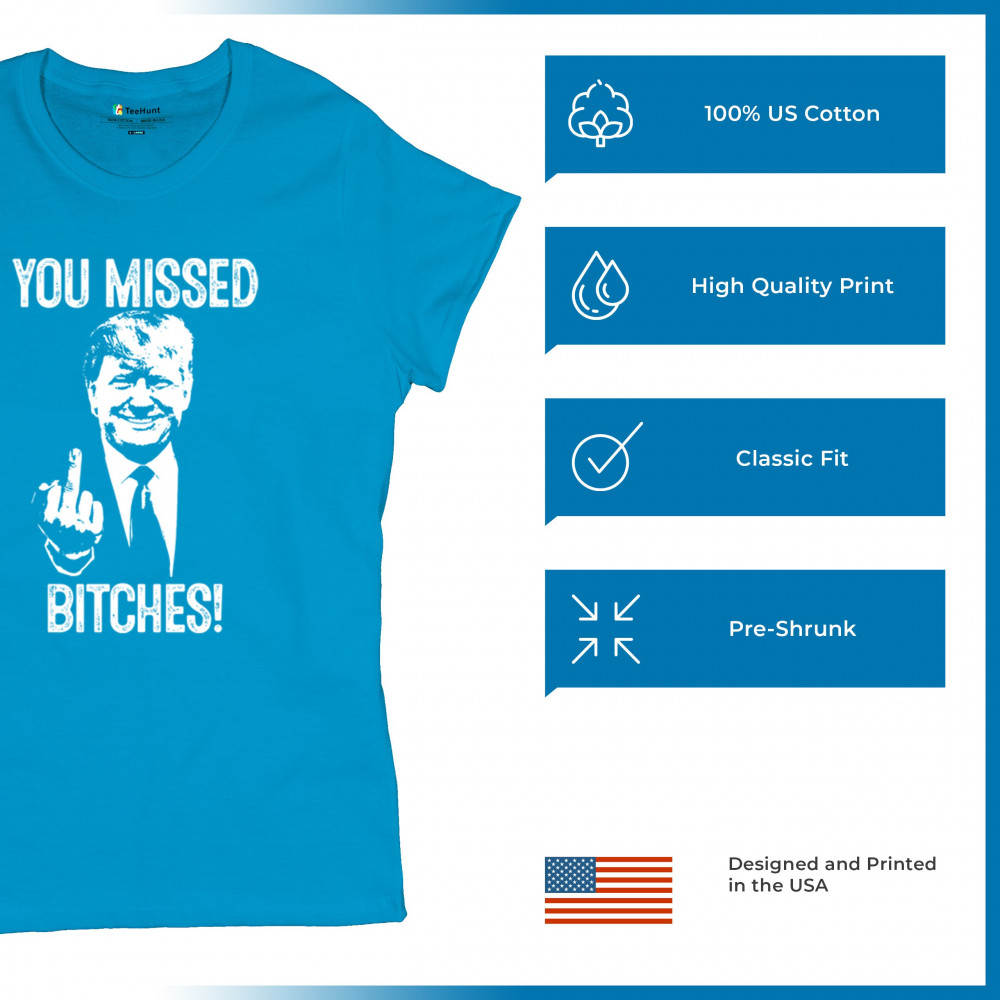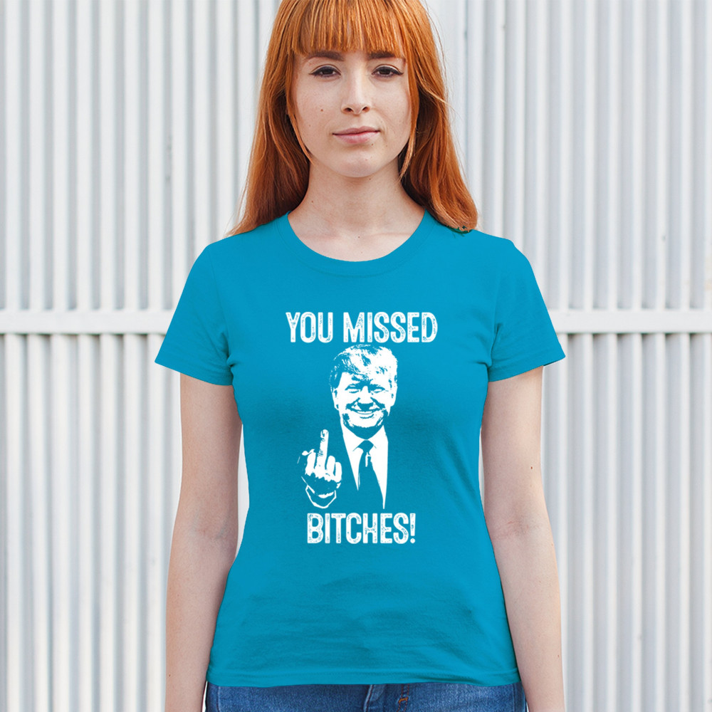 Commemorate Trump's resilience and determination with our bold "You Missed Bitches!" design. Show your support and patriotism.