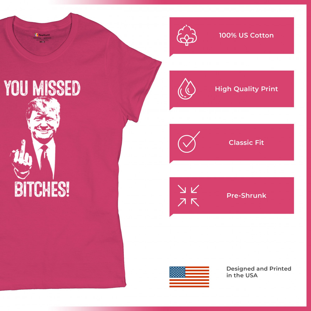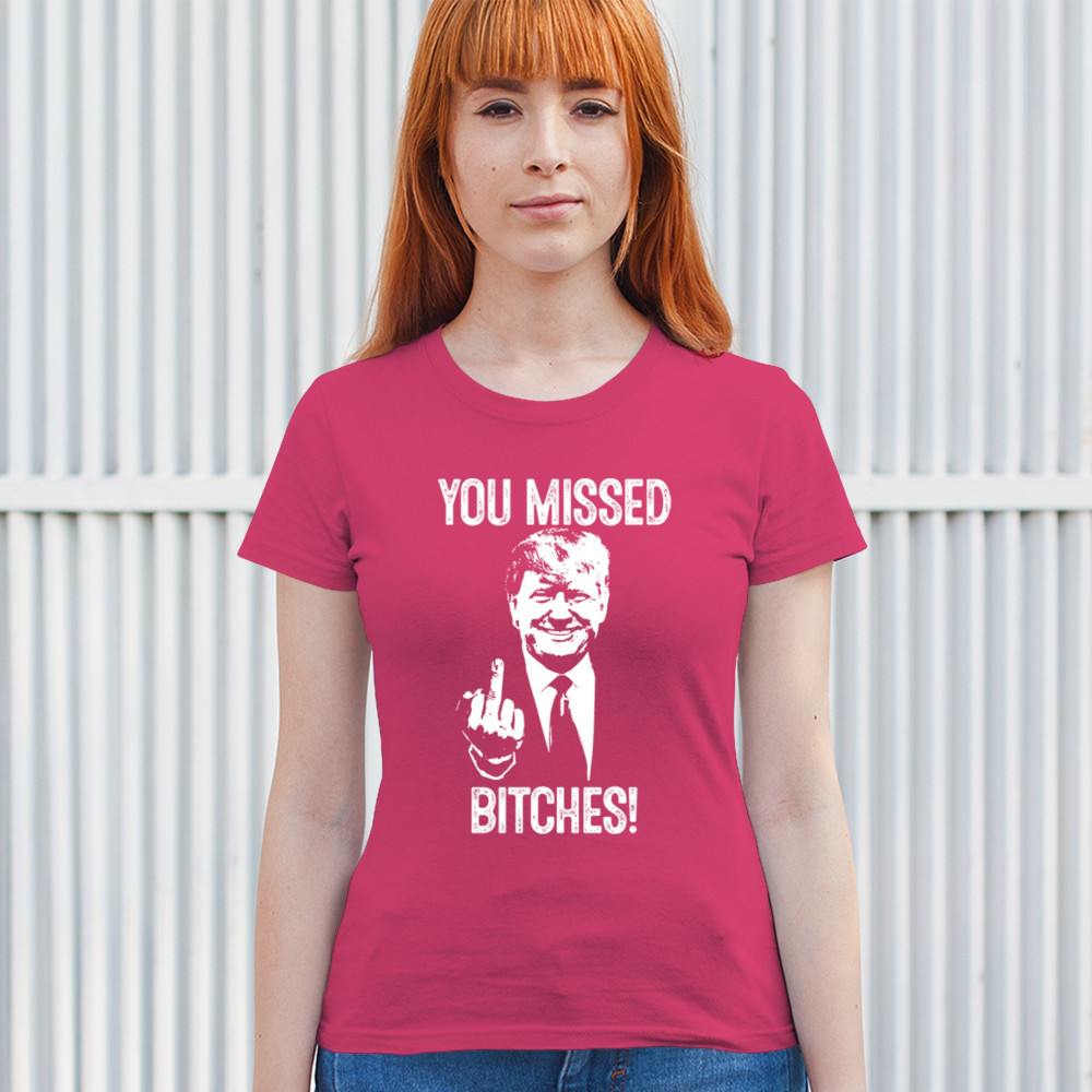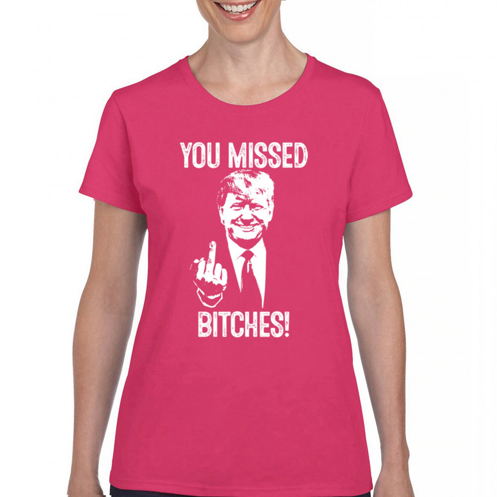 Commemorate Trump's resilience and determination with our bold "You Missed Bitches!" design. Show your support and patriotism.
