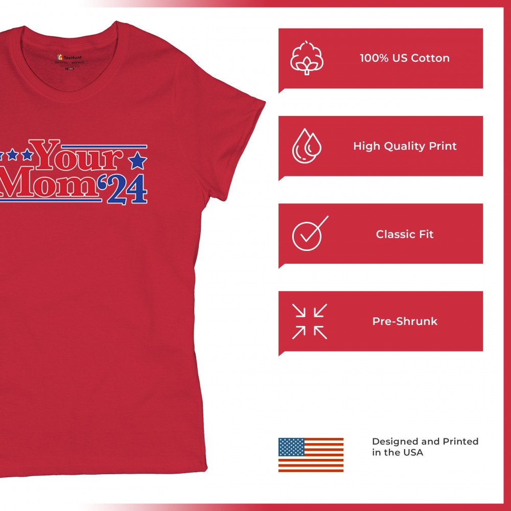 Show off your humor and style with the "Your Mom '24" design. Perfect for the 2024 election season, this design combines quality, comfort, and a playful political twist.