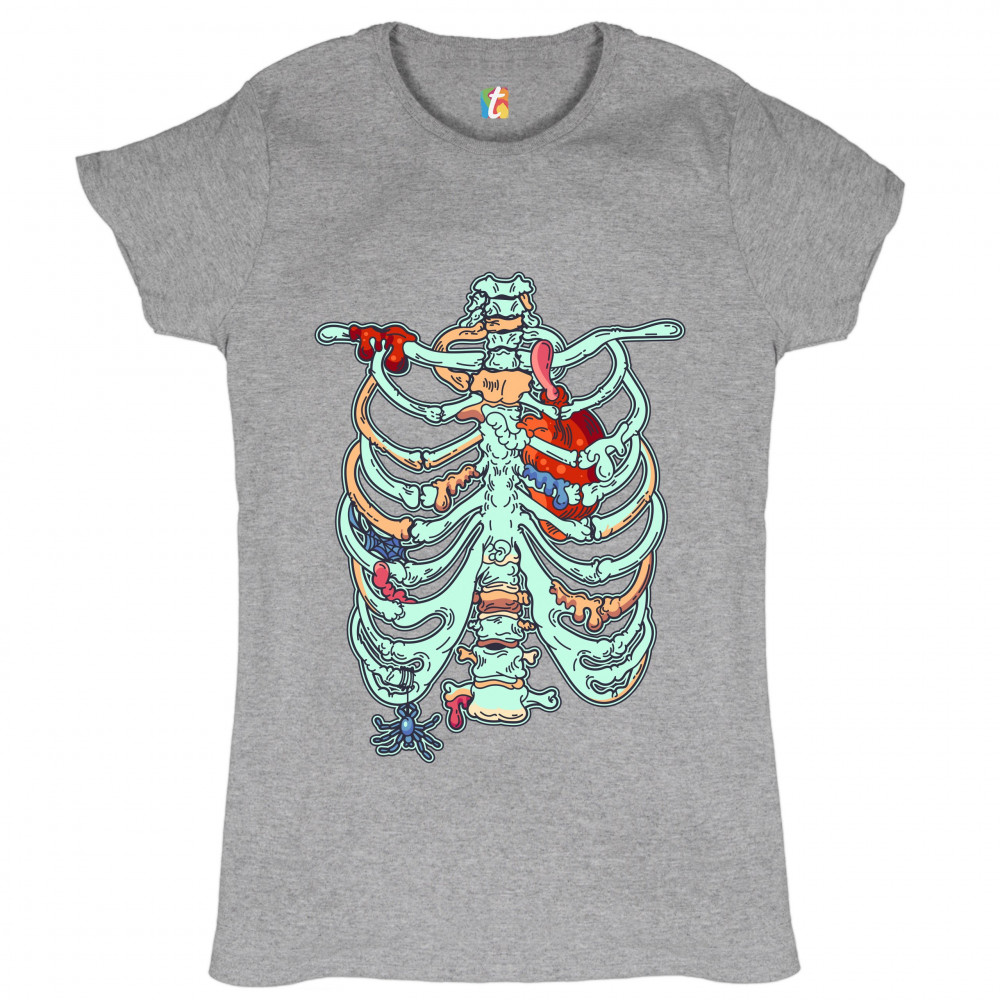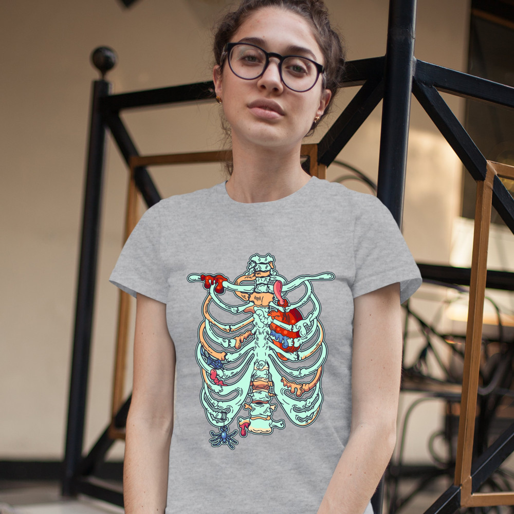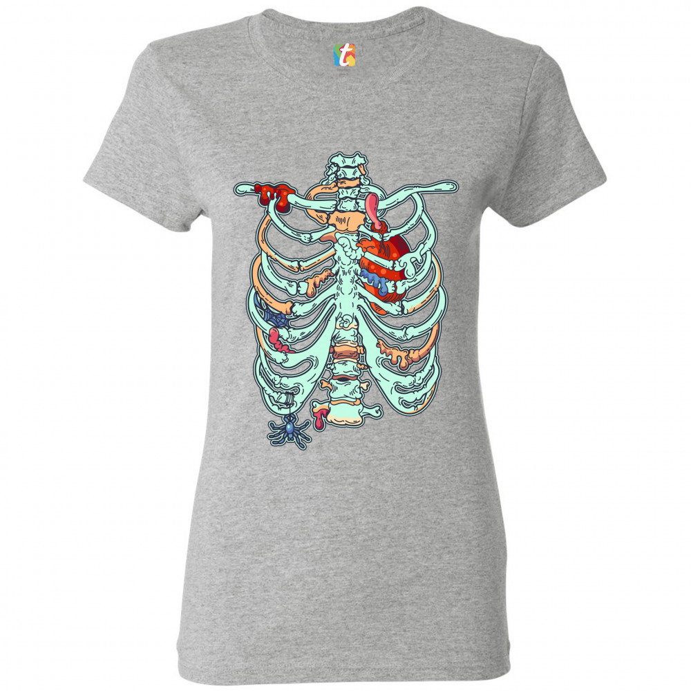 ZOMBIE RIB CAGE t-shirt all hallows' eve spooky halloween skeleton women's tee gray
