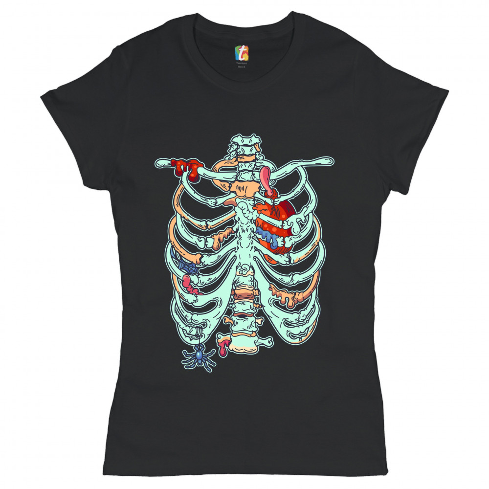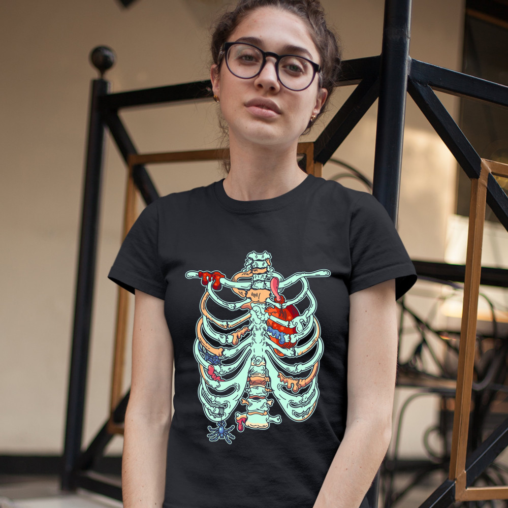 ZOMBIE RIB CAGE t-shirt all hallows' eve spooky halloween skeleton women's tee black