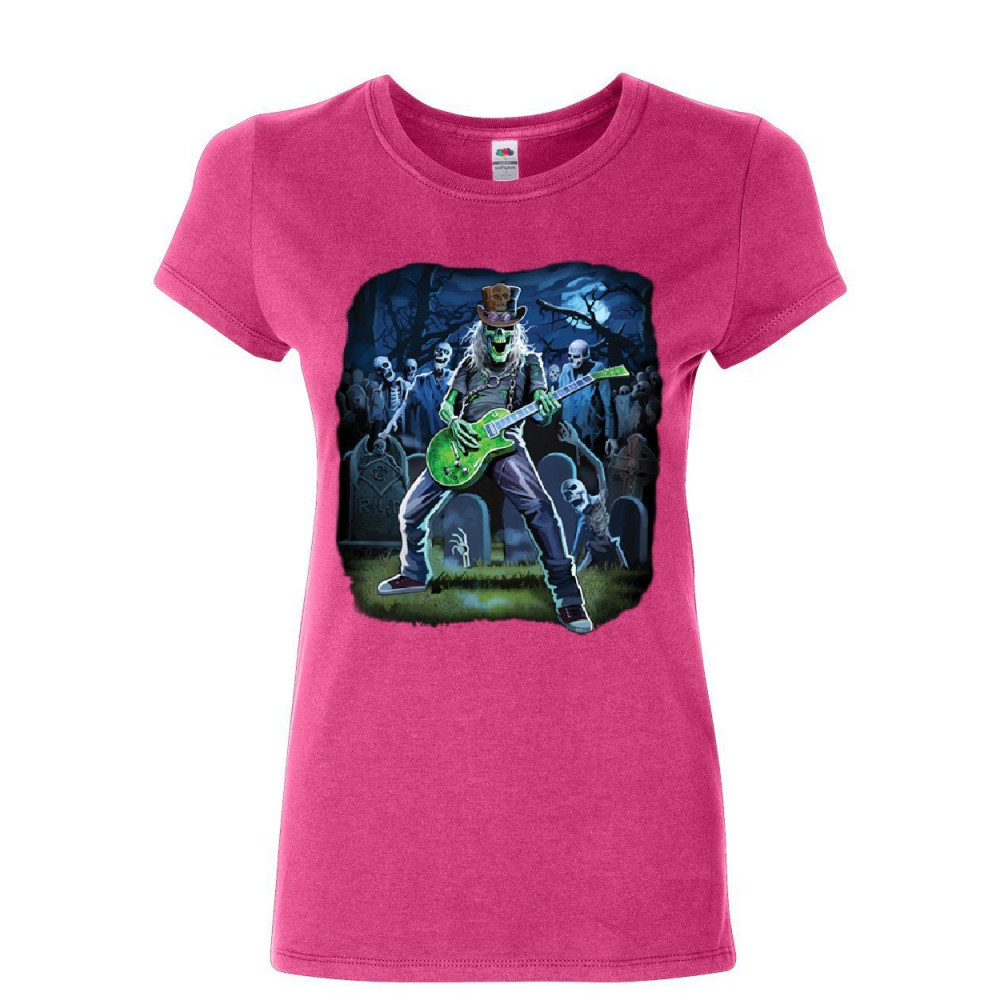 ZOMBIE ROCK women's t-shirt heavy death metal music skull hard rock shirt pink