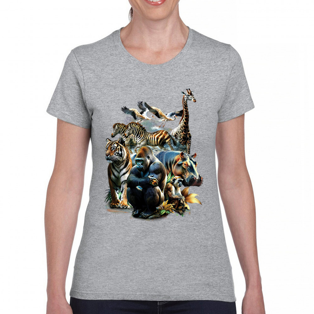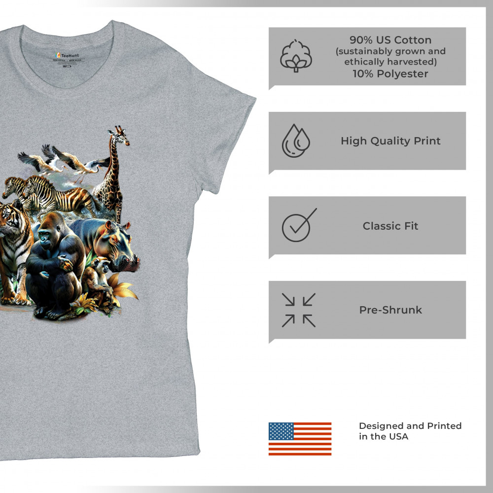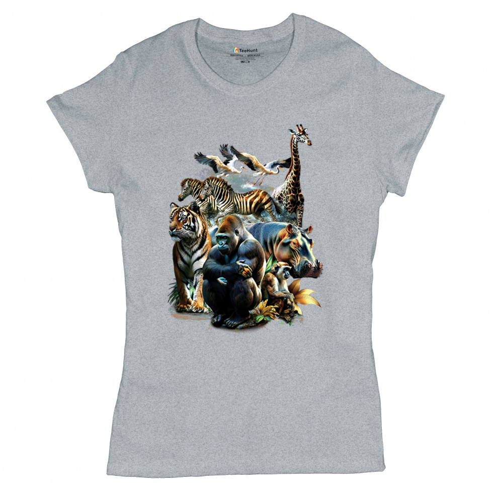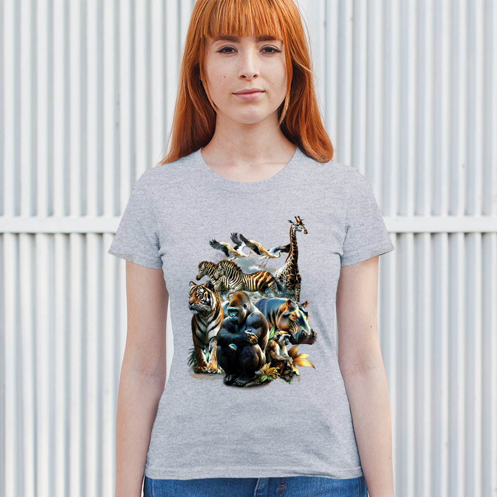 Packed with fierce energy and vibrant color, this wildlife design features a jungle coalition of gorilla, tiger, monkey, zebra, giraffe, hippo, and birds. A powerful tribute to animal beauty, biodiversity, and nature's harmony. Perfect for jungle tour enthusiasts, zoo visitors, or anyone passionate about wild conservation and stunning creature art.