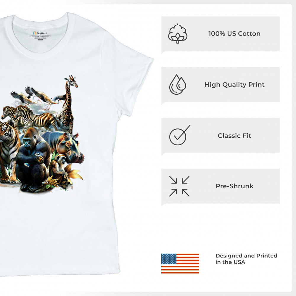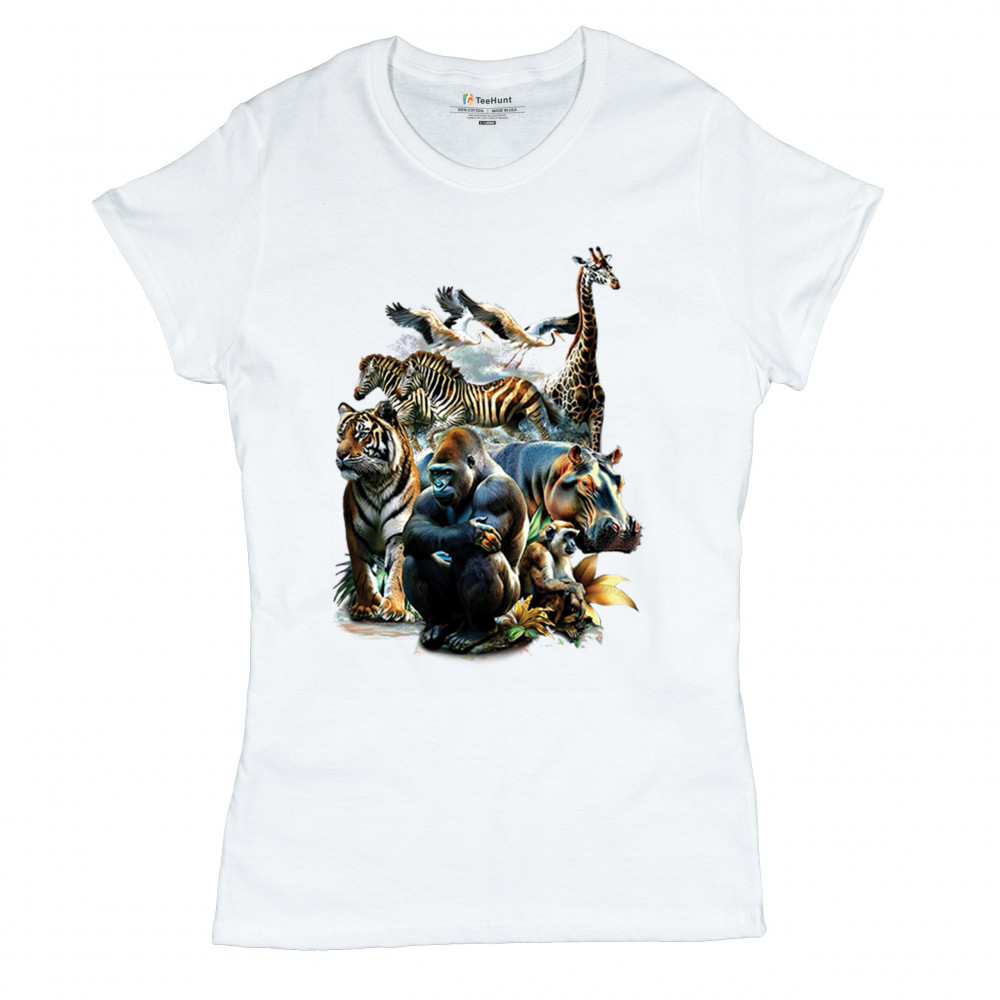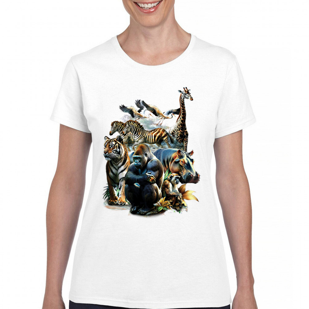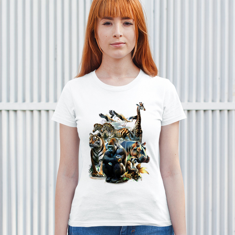 Packed with fierce energy and vibrant color, this wildlife design features a jungle coalition of gorilla, tiger, monkey, zebra, giraffe, hippo, and birds. A powerful tribute to animal beauty, biodiversity, and nature's harmony. Perfect for jungle tour enthusiasts, zoo visitors, or anyone passionate about wild conservation and stunning creature art.
