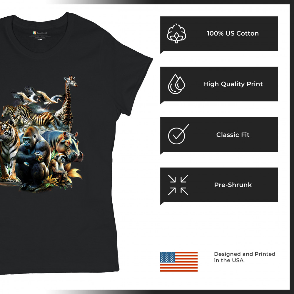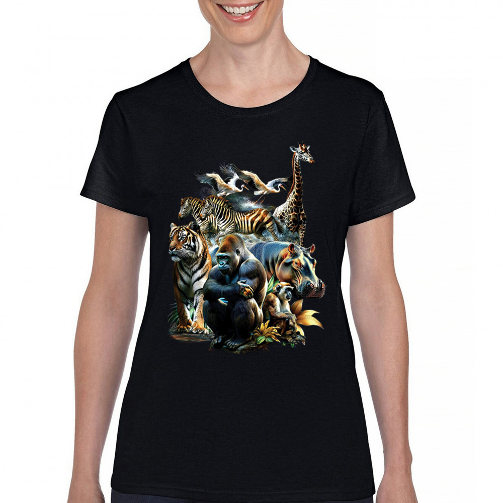 ZOO COLLAGE t-shirt gorilla jungle safari wildlife animals nature women's tee black