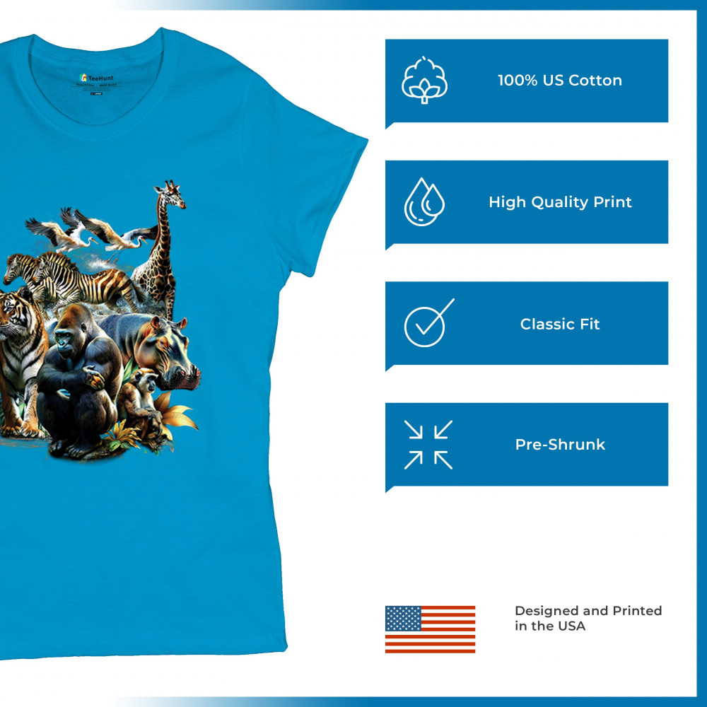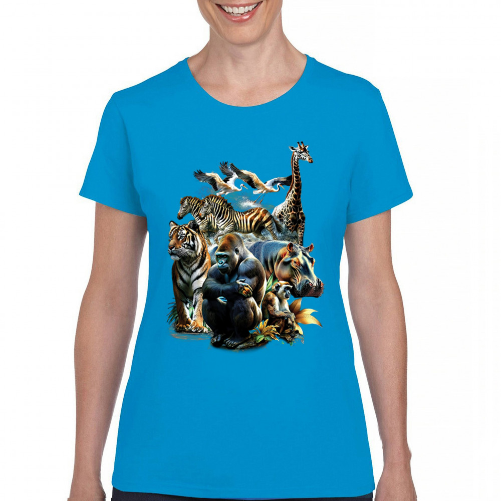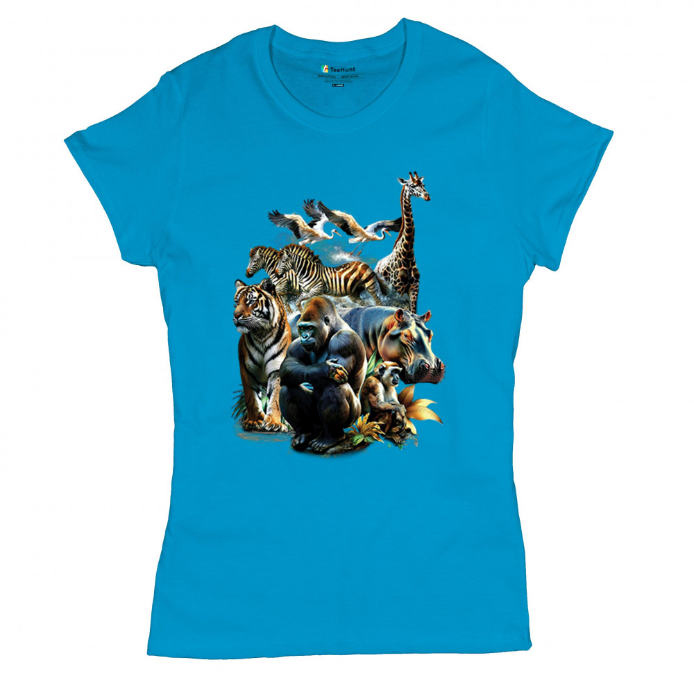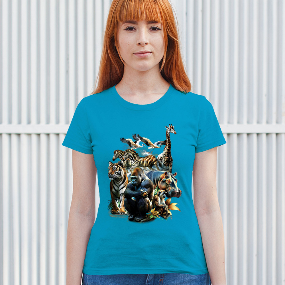 Packed with fierce energy and vibrant color, this wildlife design features a jungle coalition of gorilla, tiger, monkey, zebra, giraffe, hippo, and birds. A powerful tribute to animal beauty, biodiversity, and nature's harmony. Perfect for jungle tour enthusiasts, zoo visitors, or anyone passionate about wild conservation and stunning creature art.