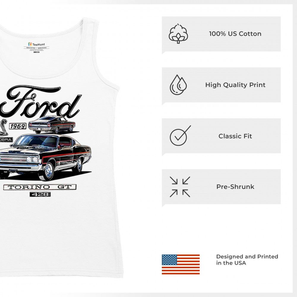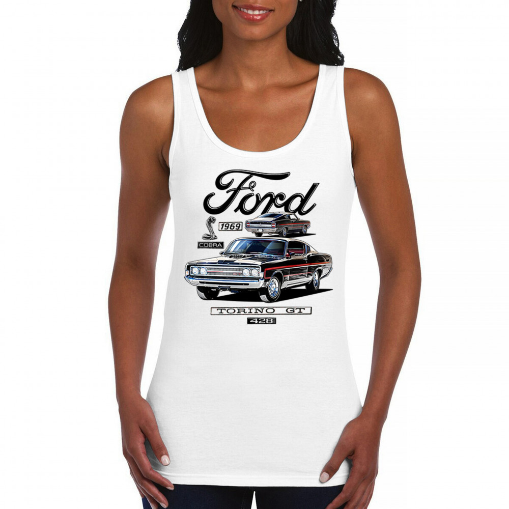1969 FORD TORINO GT COBRA women's tank top american muscle car classic retro white
