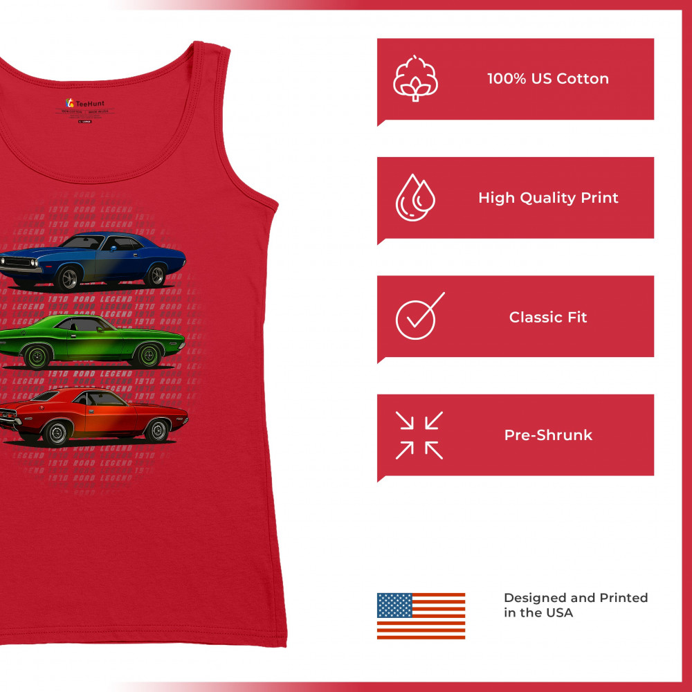 Three bold 1970 muscle cars, stacked in red, green, and blue, celebrate vintage power and road legend status. This retro-inspired design captures the essence of American car culture—made for gearheads, V8 fans, and anyone who lives for classic performance, heritage, and style.