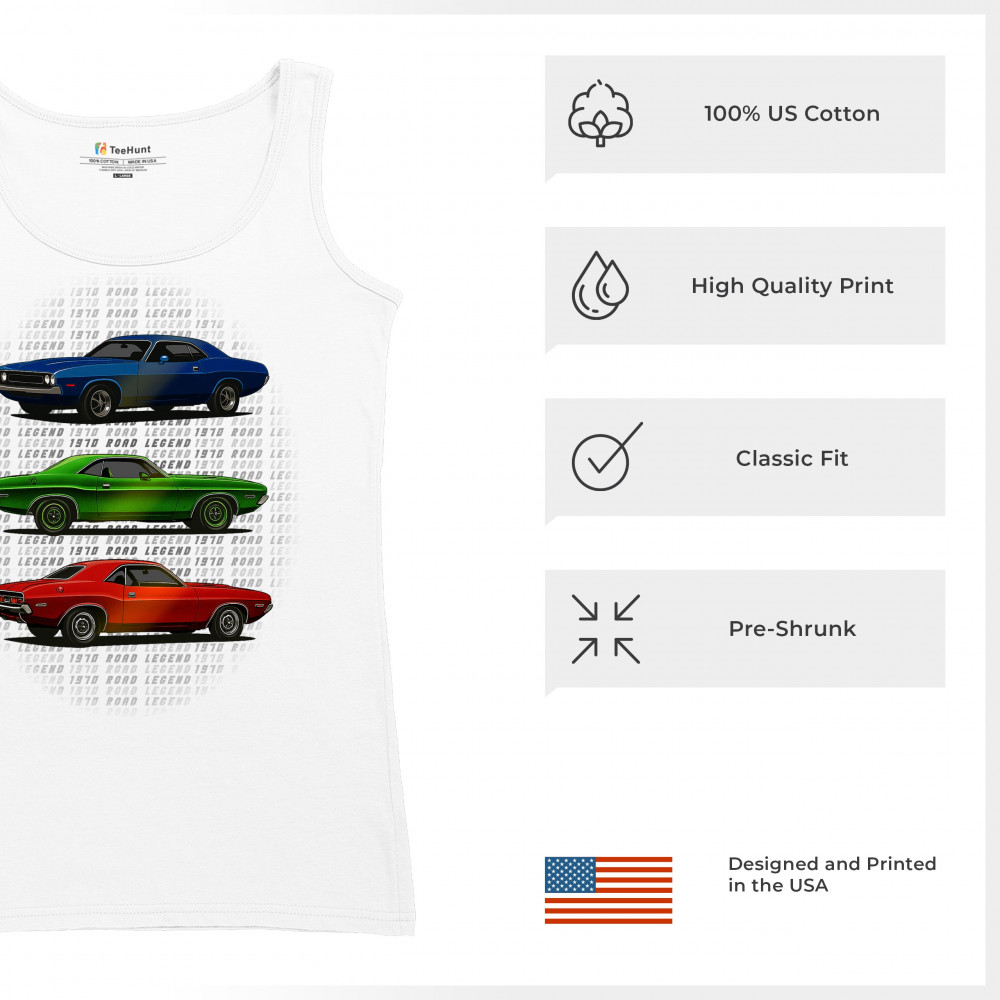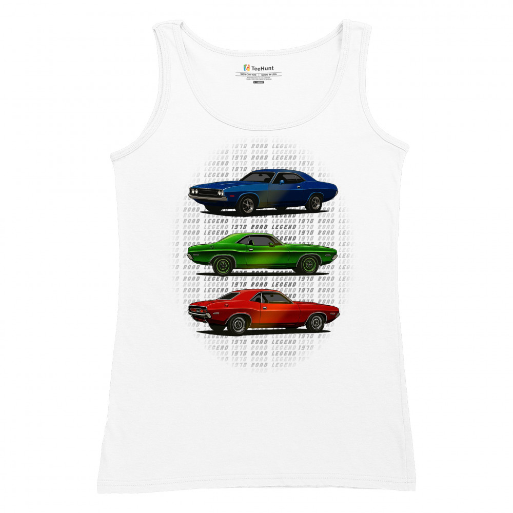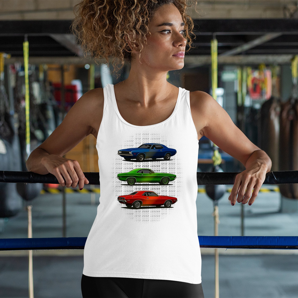 Three bold 1970 muscle cars, stacked in red, green, and blue, celebrate vintage power and road legend status. This retro-inspired design captures the essence of American car culture—made for gearheads, V8 fans, and anyone who lives for classic performance, heritage, and style.