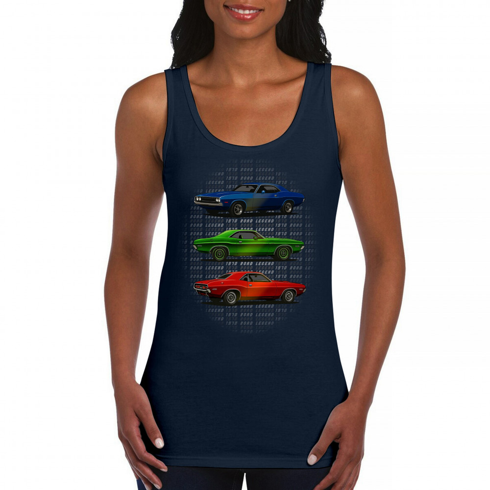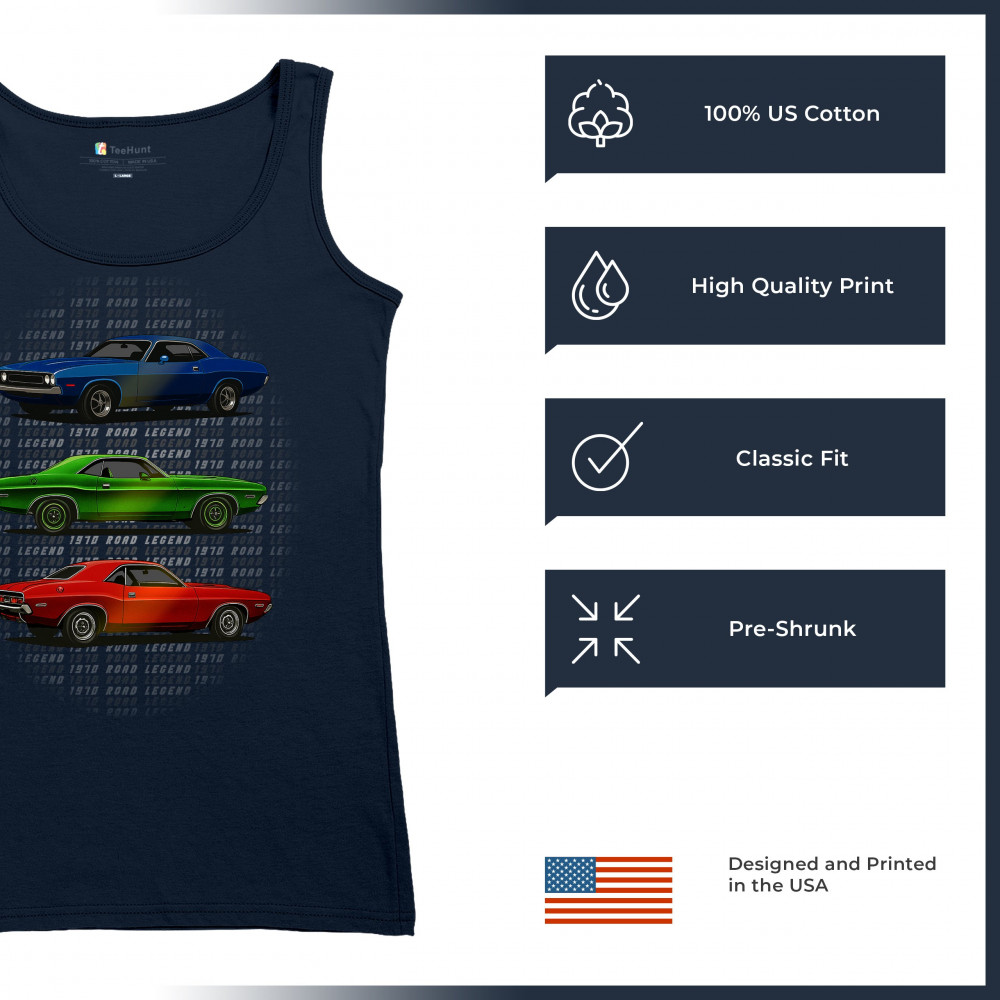 Three bold 1970 muscle cars, stacked in red, green, and blue, celebrate vintage power and road legend status. This retro-inspired design captures the essence of American car culture—made for gearheads, V8 fans, and anyone who lives for classic performance, heritage, and style.