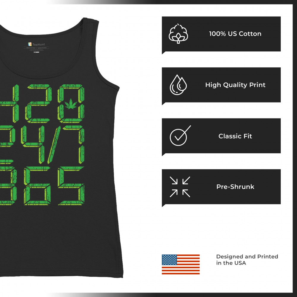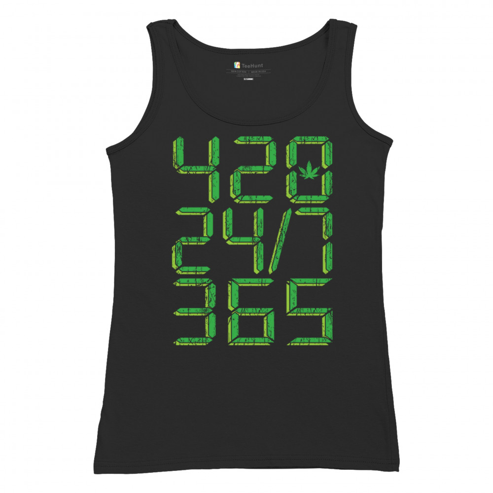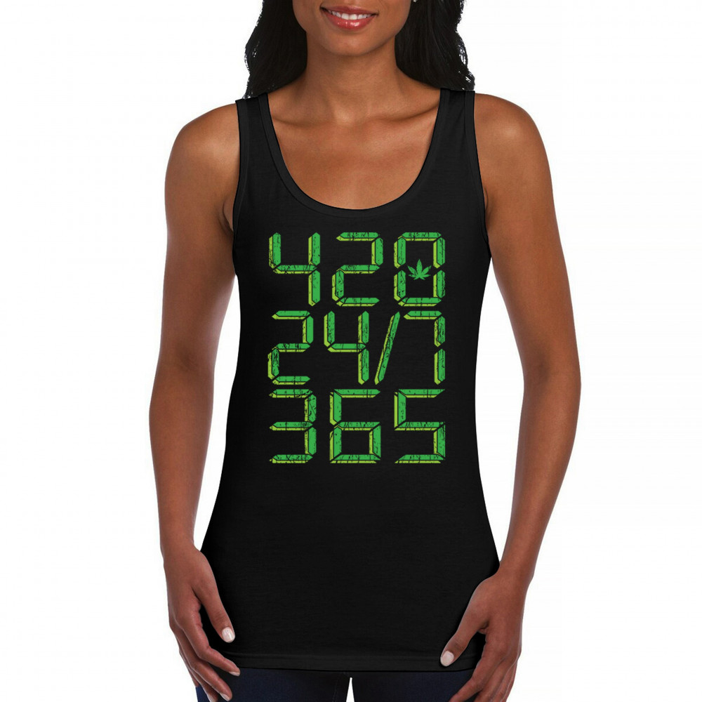 420 24 7 365 SMOKE WEED women's tank top leaf marijuana cannabis green herb black